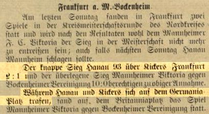 08.03.1908 | FAB-Meisterschaft | FFC Victoria - Britannia Frankfurt | 5:2 (1:1) | |