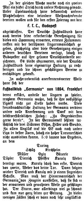 Tore: 1:0 Karoly, 2:0 Walter Dietrich, 3:0 Friedrich Weber, 4:0 Walter Dietrich, 5:0 Karoly