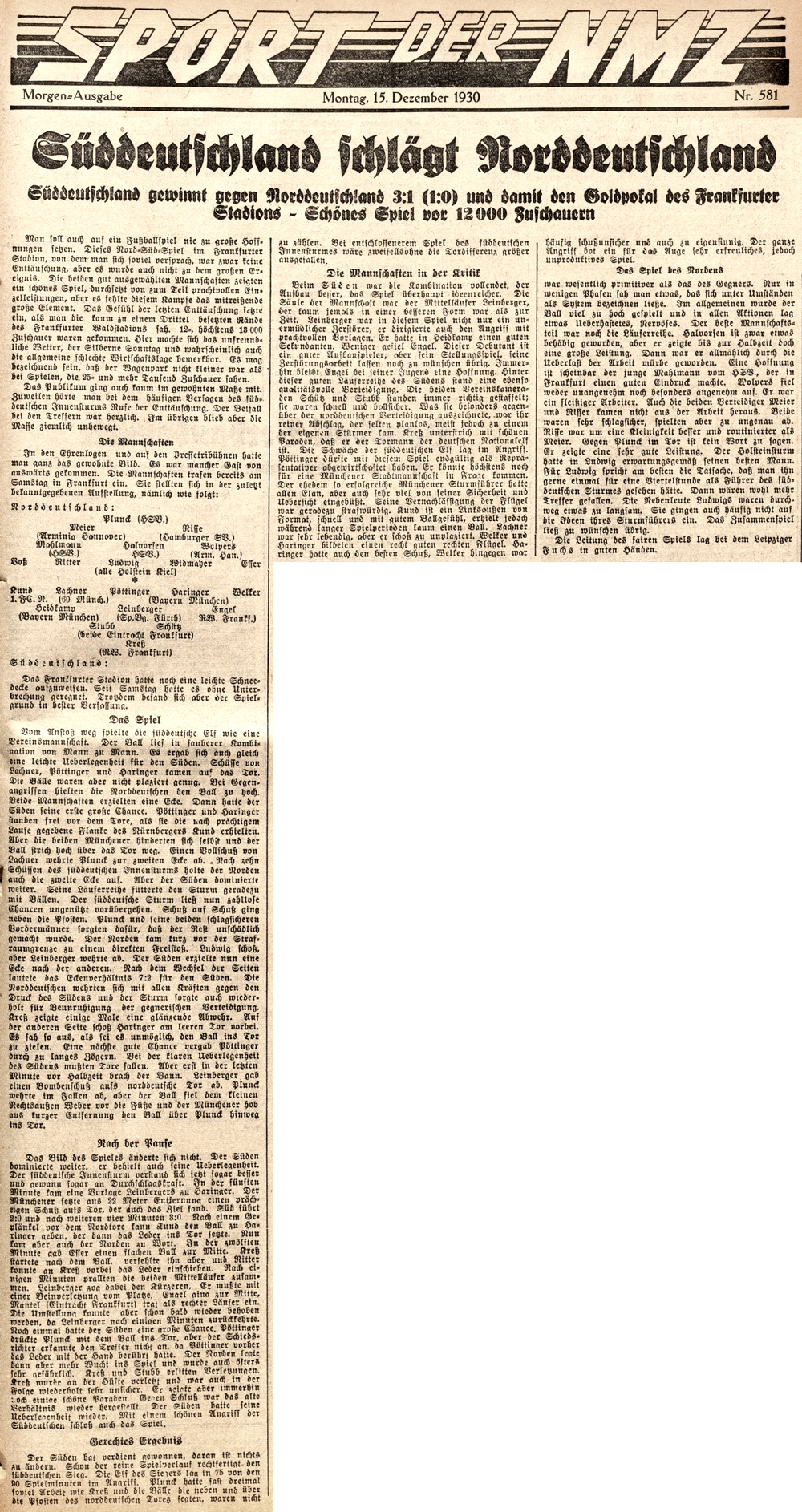 14.12.1930 | Süddeutschland - Norddeutschland (im Frankfurter Stadion mit Schütz, Stubb) |