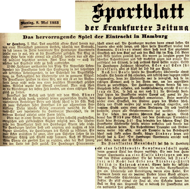 Tore: 0:1 Karl Ehmer (1.), 0:2 Willi Lindner (30.), 1:2 Sveistrup (55.), 1:3 August Möbs, 1:4 Willi Lindner