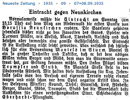 | Eintracht Frankfurt | Borussia Neunkirchen |