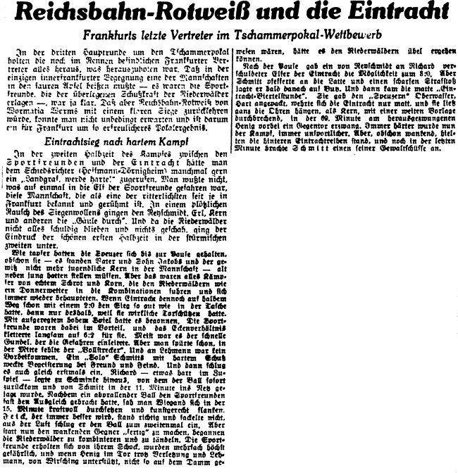 Tore: 0:1 Adam Schmitt (11.), 0:2 Ernst Feick (15.), 1:2 Kern (69.), 1:3 Adam Schmitt (89.)