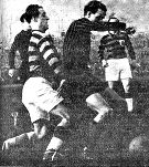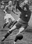 Mannheims Geheimnis: Überfall nach der Pause Islacker-de la Vigne zermürbten Eintracht Schieth entzog sich geschickt Keuerleber - Nach der Pause vertauschte Rollen Novemberliche Regenstürme und der weite Weg ins Stadion beeinflußten das Frankfurter Publikum stärker als der Ruf des deutschen Meisters. So ist die geringe Zahl der Zuschauer zu erklären, die sich schließlich aber bei aufklärendem Wetter eingefunden hatten. Die Eintrachtanhänger glaubten an einen sicheren Sieg über die Mannheimer und sie waren bei der Pause sogar felsenfest davon überzeugt; aber als die 90 Minuten um waren, mußten sie ehrlich gestehen, daß hier der Bessere verdient gewonnen hatte. Es war auch kein Zufall, daß gerade er der Schütze des Eintrachttores war. Bei der Pause schrieben wir unter der Rubrik „Beste Spieler" für die Eintracht an die erste Stelle den Namen Schieth. Am Ende strichen wir ihn wieder aus. Denn wie die ganze Eintracht-Mannschaft, versank auch Schieth nach dem Wechsel in die Mittelmäßigkeit, als der VfR Mannheim aufdrehte — und er drehte sofort mit dem Beginn des zweiten Aktes auf, was das Zeug hielt. Da kam die Eintracht nicht mehr mit. Knappe fünf Minuten genügten dem deutschen Meister, das bisherige Geschehen auszuradieren und von nun nach seinem Willen zu gestalten. Wie ein ganz Großer spielte nunmehr Islaker auf, schon vorher der wirkungsvollste Mann im Gästesturm mit großartiger Ballführung, und mit einer ans Unglaubliche grenzenden Ausdauer rannte de la Vigne immer wieder durch die Eintrachtdeckung. Wie ein Rammbock bestürmte Löttke den tapferen Kesper, der sich dabei noch ausgezeichnet aus der Affäre zog. Die Seitenläufer Maier und Müller zusammen mit Islaker und Stiefvater spannen Mittelfeldnetze, in denen sich die Eintracht rettungslos verfing. Bei der Eintracht zeichneten sich der immer zuverlässiger spielende Kesper, der unermüdlich schaffende Kraus und der temperamentvolle und schneidige Nees besonders aus. Zunächst sah es so aus, als wolle die Eintracht auf dem weichen Boden des Stadions, der ihr gut liegt, eine besondere Leistung zeigen. Um so überraschender und enttäuschender kam daher der große Leistungsabfall in der zweiten Hälfte. Trotz allem aber hat man den Eindruck, daß es der Frankfurter Elf nur an der richtigen gedanklichen Einstellung fehlt, um wirklich eine hochklassige Mannschaft zu sein. Das Material ist sehr gut, die richtige Konstruktion aber scheint noch nicht gefunden. Beim Stande von 1:2 schlug Kesper einen Weitschuß de la Vignes mit der Faust aus dem Tor über die Latte. Schiedsrichter Winkler entschied zur Verblüffung aller Anwesenden auf Abstoß. Später sagte er uns, seiner Ansicht nach habe Kesper den Ball weder mit dem Kopf noch mit der Hand berührt, sondern dieser sei auf die Latte gesprungen und dann ins Aus gegangen. Ohne Zweifel handelt es sich hier um einen Irrtum Winklers, der jedem unterlaufen kann und der an Winklers ausgezeichneter Leitung des Kampfes nicht viel ändert. (aus dem 'Sport-Magazin' vom 16.11.1949) |