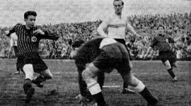 Der VfB-Kurzpaß fuhr sich in Kespers Abwehrnetz fest Hexenmeister Bögelein-Henig im Mittelpunkt - Eintracht sollte Tempel in die Mitte und Reichert auf Rechtsaußen stellen Diesmal warteten wir vergebens darauf, daß der VfB seinen Gegner kurz vor dem Schlußgong k.o. schlug, wie es ihm am letzten Sonntag gegen den VfR Mannheim gelang. Wohl dominierten die Stuttgarter nach dem Wechsel eindeutig, wohl lief ihr Spiel besser, geschmeidiger und flüssiger, aber im Angriff gab es doch bedenklich stimmenden Leerlauf. Der VfB, den wir vor Wochen bei seinem Frankfurter Spiel gegen den FSV zum Südfavoriten Nummer 1 erhoben, vermochte sich diesmal lange nicht so überzeugend in Szene zu setzen. Das lag nicht etwa daran, daß der Gegner besser als der FSV war. Nein, auch die „Eintracht" hat noch nicht wieder die Form erreicht, mit der sie einen turbulenten Saisonstart entfachte. Gegenüber dem Spiel in Neckarau bot sie weit verbesserte Leistungen, aber überzeugen konnte sie uns auch dieses Mal nicht. Jänisch „schaltet" zu langsam! Es war wieder zu viel "Sand im Getriebe". Jänischs Aufstellung als Rechtsaußen erwies sieh als glatter Fehlgriff. Ueberhaupt, Jänisch: Neben einem so klug und feinfühlig spielenden Verbinder wie Schieth wirkt sein Spiel geradezu witzlos. In den meisten Fällen tat Jänisch immer das, was er nicht tun sollte. Die 28. Minute bot ein solches Beispiel: „Eintracht" drückte. Schieth — auch diesmal erfreulich stark, seine gleichbleibende Form unterstreichend — zog Barufka und den zurückgeeilten Baitinger auf sich und schickte Jänisch mit einem Steilpaß in die „Gasse". Was tat Jänisch? Er lief nach außen, seinem Gegenspieler Steimle in die Hände! Solche Beispiele könnten wir beliebig aufzählen. Kesper übertraf Retter als Stopper Bester Mannschaftsteil — wie bei den Gästen — die Abwehr. Der für Kaster als rechter Verteidiger spielende Wloka engte den Aktionsradius Blessings so ein, daß dem (werdenden?) National--Linksaußen nichts anderes übrig blieb, als frühzeitig zu resignieren. Nur einmal (typisch Blessing!) blitzte sein unerhörtes Schußvermögen auf: Auf den rechten Flügel gewechselt, wuchtete er eine Linksflanke des Sturmdirigenten Leo Kronenbitter direkt aufs Tor, aber Henig, alle Fehler der letzten Spiele gutmachend, drehte das Leder in gewaltigem Sprung über die Latte. Kudras hatte mit Läpple Mühe, während Bechtold und Heilig erst nach der Halbzeit richtig ins Spiel kamen. Jetzt wuchs Heilig in seine gewohnte Rolle und wurde zum ruhenden Pol gegen die ständig angreifenden Stuttgarter. Eine großartige Stopperpartie lieferte Kesper, der seinen Gegenüber Retter in der konstruktiven Wirkung weit übertraf. Insgesamt gab es bei "Eintracht" viel Licht und viel Schatten. Trotzdem glauben wir feststellen zu können, daß die Mannschaft wieder auf dem Vormarsch ist. Ankurbler Schlienz fand kein Verständnis Wir sagten schon, daß der VfB seine Leistung vom FSV-Spiel nicht wiederholen konnte. Dazu war die Mannschaftsleistung diesmal nicht einheitlich genug. Im Feldspiel waren die Stuttgarter überlegen. Aber vor dem Tor versagten sie kläglich Alle Bemühungen von Robert Schlienz, dem unermüdlichen Ankurbler, verliefen im Sand, weil der Sturm das Innenspiel auf zu engem Raum aufzog. Zudem litt das Spiel des deutschen Ex-Meisters sehr unter dem schlechten Abspiel Barufkas. So gut Barufka in der Zerstörung ist, seine Pässe (wenn man überhaupt von „passen" reden kann) verwischten den guten Eindruck oft schon im nächsten Augenblick. Eine Augenweide: Kronenbitters Pässe Im Sturm ist Leo Kronenbitter nach wie vor der Dirigent. Seine Pässe sind eine Augenweide. Hinzu kommt, daß er Barufka im Mittelfeld entscheidend entlastete. Er und Schlienz waren beste Feldspieler des VfB. Der Spielausgang entsprach den Leistungen. Bei den Stürmerleistungen wäre ein Tor ein Glückstreffer gewesen. Schiedsrichter Winkler (Nürnberg) stand mit der