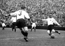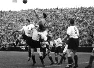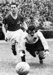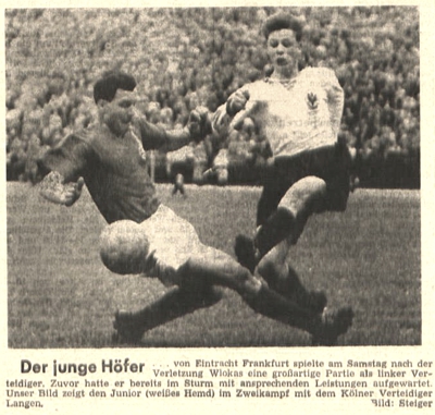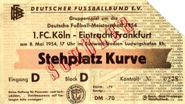 Ihre Kondition schien endlos wie die endlose Straße zu sein, ihr Spiel funkelte und blitzte in der zweiten Halbzeit wie ein feingeschliffener Diamant und je härter sie das Schicksal traf, desto grimmiger und stählerner wurde ihr Wille, mit ihm fertig zu werden. Vielleicht hatte sie sich zu Beginn des Kampfes zu sehr auf das Abwarten und auf das Kommenlassen des Gegners eingestellt — vielleicht wäre es ratsamer gewesen, ihm gleich energisch in die Parade zu fahren und die Initiative an sich zu reißen. Aber hätte sich die eingeschlagene Taktik am Ende nicht doch als richtig erwiesen, wenn Wloka nicht das Mißgeschick passiert wäre? Einer kompletten Eintracht wäre es wohl zuzutrauen gewesen, den knappen Vorsprung, den Heiligs Meisterschuß nach einem Durchbruch Pfaffs besorgt hatte, erfolgreich zu verteidigen — so leicht wäre es Stollenwerk auf jeden Fall nicht geworden, Henig innerhalb von zehn Minuten auf die Knie zu zwingen. (aus 'Der neue Sport' vom 10.05.1954)