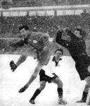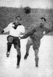 Die Riederwälder Abwehr glänzte beileibe nicht nur durch die Zahl. Gewiß, „Mittelstürmer" Weilbächer stand auf der Grenze des eigenen Strafraums. Dafür aber wagten sich die beiden Außenläufer von Anfang an um so weiter nach vorn, attackierten ihre ruhmbedeckten Gegner Beck und Sommerlatt schon in Nähe der Mittellinie, münzten jede Abwehraktion sofort in eine Angriffsaktion um, waren vorsichtig und draufgängerisch zugleich und bewegten sich auf dem glatten Boden wie Eiskunstläufer. Etwas mehr Präzision von Schymik beim Zuspiel und die Wonne wäre grenzenlos gewesen. Bechtold I erreichte besonders in der zweiten Halbzeit nahezu Idealform. Dazu zwei Verteidiger, an denen es selbst für Sprintertalente wie Termath und Traub kein Vorbeikommen gab, Bechtold II noch unnachgiebiger, härter und beherzter als Höfer — die Karlsruher konnten schließlich nur noch auf den Zufall hoffen. Riederwalds Sturm freilich brauchte seine Zeit, ehe er sich daran gewöhnte, ohne Mittelstürmer auskommen zu müssen. Er litt außerdem arg unter den Schneeverhältnissen. Am weitesten kamen noch Pfaff und Geiger, die über entsprechende technische Hilfsmittel verfügten. Feigenspan und insbesondere Kreß liefen oft in die Irre, liefen aber so viel, daß sie zwischendurch manches Gute bewerkstelligten. Pfaff und Geiger schossen in Gemeinschaftsarbeit auch den Führungstreffer der Eintracht. Ein harter Schuß von Pfaff, der von Rudi Fischer ins Feld zurückprallte, schaffte Geiger endgültig ins Netz. ('Der neue Sport' vom 14.01.1957)