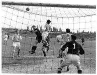 So hatte die Frankfurter Abwehr nicht allzuviel Sorgen, einige Schwächen wurden überwunden, und im Verlauf des Spieles bauten Schymik und Eigenbrodt schön auf. Im Sturm lag der Schwerpunkt auf dem linken Flügel. Erstens, weil Pfaff gut gestimmt war, auch wenn er unter der körperlichen Härte seiner Gegenspieler zu leiden hatte. Zweitens, weil Pfaff sich ausgezeichnet mit Meier verstand. Meier schlug sich mit Schießl wacker herum, überlistete ihn oft, und dabei war Schießl der beste Augsburger Spieler. Feigenspan kam gegen Kneitel I nicht so zur Geltung, wie man es sich erhofft hatte. Das lag aber auch daran, daß man den jungen Mann meistens nicht richtig anspielte und dessen Schnelligkeit nicht ausnutzte. Kneitel war in der Schnelligkeit seinem Gegner weit unterlegen. Der rechte Flügel kam gegen Ende gut ins Spiel, als Kreß mannschaftlicher spielte und seinen Eigensinn abgelegt hatte. Doch einen großen Fehler hatten alle Stürmer: sie liefen immer wieder in die Augsburger Abseitsfalle. Eine große Chance bot sich den Schwaben in der 13. Minute, doch Kneitel II verfehlte Struzinas Flanke um Zentimeter. Das war aber auch die einzige Chance der Gäste. Dafür hatte die Eintracht deren mehr. So traf Pfaffs Schuß Süßmanns Ellenbogen (15. Min.), ehe Meier mit einem schönen Schuß das 1:0 erzielte. Als ein Pfaff-Schuß abprallte, jagte Feigenspan den Nachschuß vorbei (25. Min.), und eine Minute später schoß Feigenspan ein Tor, das aber wegen Abseits nicht gewertet werden konnte. Ein toller Schuß von Pfaff prallte von der Latte hoch über Süßmanns Tor (57. Min.), aber eine Minute danach lag der Ball im Augsburger Tornetz. Schymik hatte Feigenspan steil angespielt, der Linienrichter hob zwar die Fahne, aber Fierhauser hatte es besser gesehen und entschied auf Tor. Es dauerte eine Minute, bis die Augsburger bereit waren, weiterzuspielen. Alle Hoffnung war für sie dahin, und so waren sie ruhiger, als Kreß bei einem Alleingang zwei Schwabenspieler leerlaufen ließ und zum 3:0 einschoß. (Host Kickhefel in 'Der neue Sport' vom 29.04.1957)
