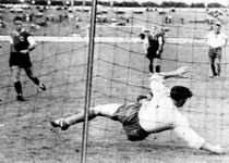 War Loy für fünf Minuten in der ersten Halbzeit der Held des Tages gewesen, so riß Süßmann in den ersten fünf Minuten der zweiten Hälfte die Menschen von den Sitzen. Einen tollen Schuß von Kreß riß er im noch tolleren Sprung um den Pfosten, einen Nahschuß Pfaffs lenkte er mit dem Knie ab. Erst als Niklasch, der diesmal sehr schwach wirkte, Kreß im Strafraum umsäbelte, war er geschlagen, denn gegen Pfaffs Elfmeter war kein Kraut gewachsen. Zwei Minuten später lupfte Geiger den Ball über Süßmann hinweg zum 4:0 ins Netz. Süßmann stand auch weiterhin unter Druck, er wehrte aber alles ab, einmal half ihm bei einem Geiger-Schuß der Pfosten. Das Spiel versandete, und nach der zweiten Halbzeit blieb ein unbefriedigendes Gefühl zurück. (Horst Kickhefel in 'Der neue Sport' vom 09.09.1957)