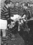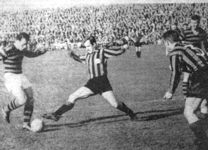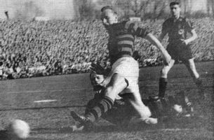Die Platzordner hatten eine Weile alle Hände voll zu tun, um die herandrängende Jugend — aus Begeisterung und wegen der Ueberfüllung — von der Auslinie fernzuhalten. Aber die Jugend ließ sich zurückdrängen und war manierlich. Es gibt nicht nur die sogenannten Halbstarken. Während der Pause flanierte groß und klein wie auf dem Corso einer italienischen Stadt. Ein Teil der Jugend wechselte zum künftigen FSV-Tor hinüber, man traute der Eintracht mehr zu. Die Aufregung unter einigen Zuschauern war groß, doch der Aufgeregteste war Bubi Armbruster. Soo aufgeregt war er damals, als er selbst spielte, nie. Das Bonmot des Derbys fiel kurz vor der Pause: Meinte ein Zuschauer erbost: „Warum spielt der Hammann nicht ab?" Erhielt der den Zuruf: „Geh runner und frag ihn!" hk (aus 'Der neue Sport' vom 06.03.1961)
