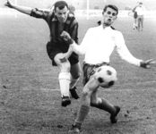 Und die Abwehr? Sie hatte sich die Angelegenheit offensichtlich eine Spur leichter vorgestellt. Außer Loy und Höfer schien der ganze Verein ein bißchen auf dem hohen Roß zu sitzen. Nur Schymik, endlich wieder in seiner Außenläuferwürde, dampfte aus sämtlichen Ventilen, startete auch ermutigend, verhaspelte sich dann aber mehr und mehr in den Grenzgebieten zwischen Wollen und Können. An Stinka lief die Partie vorbei. Er wurde nach der Pause für Horn in den Sturm geschickt, ohne daß sich etwas Wesentliches änderte. Was die Eintracht unter diesen Umständen bewerkstelligte, war eine dünne, unersprießliche Feldüberlegenheit, bei der man dauernd befürchten mußte, daß die Kanone nach hinten losging. Loy mußte sich mehr strapazieren als sein Augsburger Amtskollege Zimmerly. Einmal köpfte Stein an die Latte, einmal verfehlte er knapp die linke Torecke. Den nächsten Schuß eines Eintrachtstürmers erlebte man erst wieder in der 70. Minute. Halt! Auch Stinka traf zwischendurch mal ans Gebälk; aber der Ball war pflaumig und schlecht gezielt.