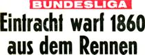 ab und schimpft in seiner bekannten polternden Art: Selbst Helmut Schön zieht angesichts der Leistung des Titelkandidaten ein langes Gesicht: „Himmel, was war die Münchner Hintermannschaft schwach! Vor allem in der Staffelung – da ging aber auch gar nichts zusammen.“ Adalbert Wetzel, der Präsident des TSV 1860 München, ist geknickt, denn die Bayern und der BVB haben ihre Partien gewonnen: „Solche Fehler dürfen einfach nicht vorkommen, aber wir stecken noch lange nicht auf, auch nach dem Dortmunder Sieg nicht.“ „Frankfurt ist für uns nun mal ein schlechtes Pflaster“, macht er sich selbst Mut. „In diesem Spiel war Musik“, lobt Helmut Schön noch und schränkt sofort ein: „Musik, die allerdings die Eintracht machte.“ Kein Wunder also, dass Eintracht-Trainer Schwartz hochzufrieden ist: „Erst muss ich mal meinen Jungs gratulieren. So viel Grund dazu hatte ich schon lange nicht mehr.“ „Ich freue mich sehr, dass es glänzend geklappt hat. Trimhold und der überraschend gut spielende Sztani haben unserem Angriff die Impulse gegeben, die seither fehlten“, lobt er und hebt Trimhold noch einmal besonders hervor: „Phantastisch! Schon in den letzten Spielen zeigte er eine konstante, saubere Form.“ Das findet auch die „Bild“ und nominiert Trimhold zum sechsten Mal in dieser Saison für die „Nationalelf der Woche“, in der auch Friedel Lutz bereits zum fünften Mal steht. Allein der starke Jürgen Friedrich findet angesichts der 100-prozentigen Chancenverwertung der Gäste aber doch noch ein Haar in der Suppe: „Wir haben zu unseren fünf Toren immerhin 15 Chancen gebraucht.“ Epilog „Seit 1949 haben die Münchner ‚Löwen’ In Frankfurt nicht mehr gewonnen; gestern kratzten ihnen vor 44.000 Zuschauern die Adler vom Riederwald mit 5:2 (3:1) die Augen aus. 1860 als Meisterschaftsanwärter? – Nach diesem Spiel glaubt niemand mehr daran“, schreibt Paul Palmert am 27.3.1966 in der „Bild“. Zwei Tage später kassieren die Münchner zudem im Viertelfinale des UEFA-Cups beim FC Chelsea eine 0:1-Niederlage, die für sie nach dem 2:2 im Hinspiel das Ausscheiden bedeutet. Doch als sie am vorletzten Spieltag beim punktgleichen Tabellenführer Dortmund antreten, entführen sie mit einem 2:0-Sieg beide Zähler aus dem Westfalenstadion. Nachdem die Sechziger im letzten Spiel gegen den HSV 1:1 spielen und der BVB in Frankfurt mit 1:4 unterliegt, wird die Truppe von Max Merkel doch noch Deutscher Meister. (rs)