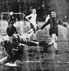 Die Eintracht tändelte, bis sie der Konter der Polen traf. „Nur" noch 4:1—also Torgleichstand! Gezwungen, noch einmal Dampf zu machen, spielte die Eintracht in den letzten zehn Minuten beinahe wie in den ersten 20 Minuten. Die Tore fielen wie reife Früchte. Huberts, nicht genau markiert, schickte seine Pässe durch alle Lücken der Sosnowitzer Abwehr, Grabowski oft rochierend — kam auf dem linken Flügel besser zum Zuge — denn der rechte Verteidiger war die größte Achillesferse der Polen. Abbé gab Proben seiner großen Schußkraft. Was ihm fehlt, ist der schnelle Start auf den ersten zwei Metern. Solz kämpfte um „sein" Tor — und darüber vergaß er manchmal die Nebenleute. Am großen Spielwirbel war aber auch er maßgeblich beteiligt! Frankfurts Abwehr wurde nur gefordert, als der Sturm einen Gang zurückschaltete. Der große Unterschied beider Mannschaften lag im Tempo. Eintracht spielte im Schnellzug-Stil, Sosnowitz im Kleinbahn-Trab. Die Frankfurter hatten Witz, die Polen nur Willen. ('Kicker' vom 03.04.1967)