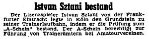 Abserviert Für Frankfurter mit einem gewissen Hang zum Besuch von Sportveranstaltungen ist das Heimspiel der Eintracht gegen Borussia Neunkirchen an diesem Samstag der Auftakt zu einer ereignisreichen Woche. Mit Fußball kann es beispielsweise am Sonntag beim Regionalligaspiel FSV Frankfurt gegen den FC Villingen 08 weitergehen, am nächsten Mittwoch findet das Nachholspiel der Eintracht gegen den VfB Stuttgart statt. Am Freitag boxen Karl Mildenberger und Lothar Stengel in der Festhalle. Am Samstag in einer Woche - die Eintracht weilt dann zu ihrem Gastspiel beim Hamburger SV - können sich die ganz Hartgesottenen das Regionalliga-Derby der Offenbacher Kickers gegen den FSV Frankfurt antun, und am Samstagabend ist die Festhalle Austragungsort des Endspiels um den Europapokal im Hallenhandball der Männer zwischen Dukla Prag und Steaua Bukarest. Während sich die Mannschaft der Riederwälder auf den Schlussspurt in der Liga vorbereitet, ist das Präsidium auf der Suche nach einem neuen Trainer. Als aussichtsreichster Kandidat für die Nachfolge von Elek Schwartz wird aktuell Gyula Lorant gehandelt, der zurzeit noch beim MSV Duisburg unter Vertrag steht. Lorant, der sich dieser Tage zu Gesprächen mit der Eintracht in Frankfurt aufgehalten haben soll, genießt einen gleichsam guten Ruf als Fußballer und als Trainer. Er spielte 37 Mal für die ungarische Nationalmannschaft, unter anderem im legendären Finale der Fußballweltmeisterschaft 1954 in Bern. Als Bundesligatrainer führte er den 1. FC Kaiserslautern in der letzten Saison auf einen nicht erwarteten fünften Tabellenplatz, mit den Duisburgern hielt er sich bis zur Winterpause in der Spitzengruppe der Liga. Der Ungar zählt freilich zu den Spitzenverdienern seiner Branche in Deutschland und würde die Vereinskasse ebenso merklich belasten wie das Engagement von Elek Schwartz. Angesprochen auf die Schwartz-Nachfolge gibt sich Eintracht-Präsident Rudi Gramlich unverbindlich: "Wir haben noch keinen neuen Mann für die nächste Saison. Die Trainerfrage ist bei uns keine Frage der Person oder des Namens, sondern ein Programm. Denn wir haben ein erstklassiges Spielermaterial."