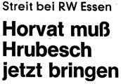 Doch Horvat kann nicht in Ruhe arbeiten: Die Personalie Hrubesch überlagert alles andere. Der Hüne, den Borussia Dortmund nach einigen Tagen Probetraining für bundesligauntauglich erklärte und den auch der VfL Bochum nicht haben wollte, hat bei RWE als 24-Jähriger die Chance ergriffen, seinem sportlichen Schicksal eine Wende zu geben und doch noch Profi-Fußballer zu werden. Danach hatte es nämlich nicht mehr ausgesehen: Eine Knieverletzung stoppte ihn in der Verbandsliga beim Hammer SV und nach einer längeren Pause versuchte er es erst vor zwei Jahren wieder in der Kreisklasse beim SV Westtünnen. Dort erzielte er über 70 Tore und in der letzten Saison in der Bezirksklasse immerhin noch 51 Treffer. "In der Bundesliga werden es zwar sicherlich nicht so viele", meinte er schmunzelnd, "aber mir genügt es bereits, wenn ich im ersten Dutzend der Torjäger zu finden bin. Schließlich habe ich gerade erst vier Klassen übersprungen." Entdeckt hat ihn einer seiner aktuellen Mitspieler: "Ich habe unter meinem bisherigen Trainer in Westtünnen, Werner Lorant, meinem jetzigen Nebenmann, viel gelernt, habe vor allem im Training bei RWE immer die Augen offengehalten. Wenn man mir Zeit lässt, verspreche ich, noch viele angenehme Überraschungen zu schaffen." Diese Zeit wollte ihm Horvat ohnehin geben: "Man hat bei Kaczor gesehen, dass überhasteter Aufbau auf Dauer nicht nützlich sein kann. Außerdem ist Hrubesch nicht in allen Spielen von der Taktik her für einen Einsatz prädestiniert. Ich werde wahrlich nichts überstürzen." Doch dann erzielte Hrubesch am ersten Spieltag bei seinem ersten Einsatz als Profi auf Anhieb zwei Tore und wurde mit einem Lattenkopfball nur knapp am dritten Treffer gehindert. Die Fans feierten ihn mit Sprechchören. "Ich bin glücklich", freute er sich: "Ich hoffe nur, dass ich nicht urplötzlich aus diesem schönen Traum erwache." Aber so kam es, obwohl Hrubesch in seinem zweiten Spiel den dritten Treffer folgen ließ. Denn danach verzichtete Horvat bis zum 10. Spieltag auf den Stürmer. "Hrubesch besitzt noch nicht die nötige Bundesligareife", lautete seine Begründung, die ihn zusehends in die Kritik brachte. Bei der 1:3-Heimniederlage gegen das von Lattek trainierte Gladbach riefen die Zuschauer in der letzten halben Stunde unentwegt nach Hrubesch, doch Horvat blieb unbeeindruckt: "Er hätte gegen Gladbach auch nichts ausrichten können. Aber vielleicht bekommt er schon in Kürze seine neue Chance ..."