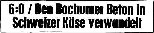 Weidle ist es auch, der nach 25. Minuten die verdiente und bereits überfällige Führung der Eintracht vorbereitet. Es ist der gleiche Spielzug, der Wenzel vorher noch um seine Chance brachte. Diesmal jedoch verlängert Hölzenbein Weidles Flanke per Kopf zu Wenzel und nicht an diesem vorbei. Wenzel erhascht den Ball vor der Torauslinie, lässt Fromm mit einem Haken aussteigen und schließt den Angriff fast von der Grundlinie mit einem harten Schuss ab. Aus derart spitzem Winkel trifft ein Stürmer im besten Fall den Torwart, meist aber wohl nur das Außennetz, Wenzels Geschoss jedoch zischt wie ein Strahl in die äußerste Ecke des Bochumer Tores. Lothar Emmerich hätte man einen solchen Treffer zugetraut, Gerd Müller auch, aber dass Rüdiger Wenzel solch ein Tor zu erzielen vermag, hätte dem jungen Mann kaum einer zugetraut. "Ich habe in der Mitte kein weißes Hemd für eine Vorlage gesehen, also habe ich drauflos gedroschen", gibt sich der stürmende Neuzugang der Eintracht bescheiden. Wer nun glaubt, die in Rückstand geratenen Bochumer würden ein bisschen offensiver spielen, irrt. Ein Schuss von Kaczor in der 43. Minute aus fünf Metern über das Eintracht-Tor bleibt die einzige Torchance der Bochumer in der ersten Halbzeit. Die Frankfurter sind dem 2:0 deutlich näher als die Gäste dem Ausgleich. Die letzte Chance hat Körbel, dessen Volleyschuss in der 44. Minute von Fromm von der Linie geschlagen wird. Bochums Trainer Heinz Höher hat trotz des knappen Rückstands offensichtlich schon zur Pause die Hoffnung auf einen Punkt aufgegeben, denn er ersetzt zum Wiederanpfiff Linksaußen Pochstein durch Abwehrspieler Versen. Ob er tatsächlich mit dem 0:1 zufrieden ist und es halten will? Wenn, dann gelingt es ihm nicht. Drei Minuten nach der Halbzeitpause wird Wenzel von Tenhagen im Strafraum schwer gefoult. Diese Entscheidung hat der Bochumer Spieler Schiedsrichter Jan Redelfs wirklich einfach gemacht: Strafstoß. Hier zahlt sich nun doch noch aus, dass die Eintracht vor dem Rückspiel gegen Madrid fleißig Elfmeterschießen geübt hat. Bernd Lorenz beweist, dass er nicht nur ein Freund lässiger Mode ist, sondern auch ebenso lässig seiner Arbeit nachzugehen versteht. Den Elfer verwandelt er jedenfalls so eiskalt, wie man einen Korn serviert haben möchte. Die Bochumer bekommen jetzt die gerechte Strafe für ihren Fußball, der die Zuschauer eine Halbzeit lang leiden ließ. Die Bestrafung wird von Beverungen fortgeführt, der in der 54. Minute von Hölzenbeins mit einem maßgerechten Rückpass bedient wird. Beve trifft den Ball nicht richtig, aber der verunglückte Schuss landet dennoch zum 3:0 im Bochumer Tor. Doch damit nicht genug, die Bochumer haben nun Pech, als hätten sie eine Lkw-Ladung Spiegel zerbrochen: Jupp Tenhagen, ihr bester Mann neben dem unermüdlichen, aber auf sich allein gestellten Eggeling im Sturm, stürzt und fällt dabei so unglücklich auf seine rechte Hand, dass diese bricht. Der zu Saisonbeginn vom Absteiger Wuppertaler SV nach Bochum gewechselte Erich Miß kommt für den Verletzten ins Spiel. Nach einer Stunde erhalten die Gäste den nächsten Schlag. Körbels Offensivgeist wird belohnt, nachdem Wenzel den Vorstopper mit einem Fallrückzieher bedient hat. Vor den ausgestreckten Armen des Bochumer Torhüters kommt Körbel an das Leder und stößt die Kugel mit dem Kopf zum 4:0 ins Netz. Der Bochumer Beton bröckelt nicht nur, er hat mittlerweile so viele Löcher wie ein Schweizer Käse. Die 10.000 Zuschauer fordern lautstark eine Zugabe und in den nächsten 10 Minuten bemüht sich die Eintracht auch, dem Wunsch der Zuschauer zu entsprechen. Grabowski und Hölzenbein ziehen fließende Kombinationen auf, die dem Fußballgourmet das Wasser im Mund zusammenlaufen lassen, den Gästen jedoch den Appetit verderben. Rüdiger Wenzels Wucht im Sturmzentrum bedeutet zudem eine ständige Gefahr für die Abwehr des VfL, die auch kein Mittel gegen Neuberger findet, der das Spiel seiner Elf clever von hinten aufbaut und ankurbelt. In den letzten 20 Minuten lassen die Anstrengungen der Hausherren, weitere Treffer zu erzielen, sichtbar nach. Die Eintracht nimmt das Tempo und damit den Druck aus dem Spiel, ein Debakel bleibt den harmlosen Bochumern dennoch nicht erspart. Sechs Minuten vor dem Ende ist es Reichel, der bereits am Mittwoch das Siegtor gegen Madrid erzielte und nun erneut zuschlägt. Aus dem Gewühl heraus vollstreckt der Außenverteidiger zum 5:0. Zwei Minuten später macht dann Beverungen das halbe Dutzend voll und die Bochumer Blamage perfekt. Beves mächtiger Schuss prallt zwar vom Pfosten zurück, aber dann an das Bein von Schlussmann Scholz und von dort ins Tor – 6:0. Nach sieben sieglosen Bundesligaspielen meldet sich die Eintracht mit diesem Triumph eindrucksvoll zurück. Überhaupt zum ersten Mal in dieser Runde gelang es der Abwehr, ein Gegentor zu verhindern, was aber angesichts der Torflut auf des Gegners Seite kaum Beachtung findet. Günter Wienhold hatte auf alle Fälle den ruhigsten Nachmittag seit langem. Bochums Trainer Heinz Höher wirkt trotz der bösen Schlappe fast ungerührt und gibt erstaunlich sachlich zu Protokoll: "Nach zehn Minuten war mir schon klar, dass die Eintracht wie gegen Madrid im Spielrausch war und wir keine Chance haben würden." Diese Erkenntnis manifestierte sich wie vermutet dann auch in der Auswechslung seines zweiten Stürmers vor Beginn der 2. Halbzeit. Die hohe Niederlage hat Höher aber bereits abgehakt, er sieht andere Probleme auf sich und die Mannschaft zukommen: "Härter als die hohe Niederlage trifft uns der Handbruch von Tenhagen, ein fast unersetzlicher Spieler. Ich hoffe, dass wir uns bis zum Bayern-Spiel am nächsten Wochenende wieder erholt haben." "In unserer Situation und bei diesem Gegner mussten wir uns ganz einfach was einfallen lassen", beginnt Kapitän Grabowski seine Ausführungen zu den taktischen Grübeleien, zu denen Trainer Dietrich Weise vor der Partie gegen Bochum auch die Mannschaft hi