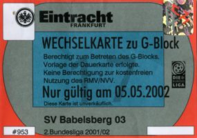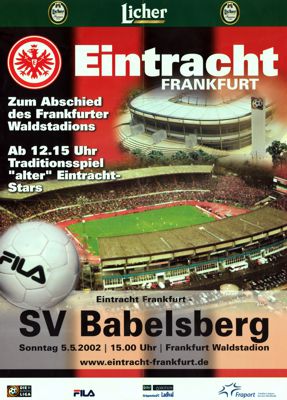 In der 64. Minute brandet auf einmal tosender Jubel im Waldstadion auf, denn die Anzeigetafel vermeldet die 1:0-Führung von Union Berlin gegen Mainz, dass damit auf Rang Vier abrutscht. Nachdem N’Kufo in der 73. Minute für Mainz den Ausgleich erzielen kann, gilt das Interesse wieder kurz dem langweiligen Geschehen auf dem Platz, das nur einmal noch von Beifall unterbrochen wird, als Yilmaz Örtülü sein Debüt bei den Profis gibt (74.). Es wird gleichzeitig sein letztes Spiel für die Eintracht, denn der 22-Jährige wechselt nach der Saison zum von Horst Ehrmantraut trainierten 1. FC Saarbrücken. Richtig laut wird es wieder in der 83. Spielminute, als Vidolov Union Berlin in Führung bringt. "Wir singen Mainzer, Mainzer zweite Liga, oh ist das schön, euch wieder zu sehen", singt nicht nur der jetzt vollbesetzte G-Block erst verhalten und dann richtig laut, als Isa für die Berliner auch noch das 3:1 erzielt. Schiedsrichter Dr. Fleischer in Frankfurt hat unterdessen ein Einsehen und pfeift das letzte Spiel der Eintracht in dieser verkorksten Saison 2001/2002 überpünktlich ab. Noch drei Freundschaftsspiele gibt es in den kommenden 14 Tagen, dann ist es mit Fußball vorbei. Noch ahnt es keiner, doch dann kommen erst die richtigen Schicksalswochen der Eintracht, die mit dem Ausstieg von Fotex Ende Mai beginnen, einen vorläufigen Höhepunkt mit der Lizenzverweigerung am 19. Juni finden, um nach einer beispiellosen Schlammschlacht schließlich ihr glückliches Ende am 17. Juli in einem Gerichtssaal des Frankfurter Oberlandesgerichtes zu finden… (dazu mehr im Spielbericht “Kopenhagen“)