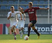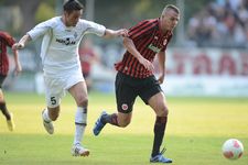 Vier Minuten später zeigt sich auch einmal die Eintracht, nachdem sich Jung auf der rechten Außenbahn durchsetzen kann und zu Aigner flankt, der die Kugel aus gut 20 Metern knapp über den Kasten von Adolf zimmert. Frankfurt bleibt am Drücker, Schwegler schickt Jung steil, der an den Ball kommt und ihn kurz vor der Torauslinie scharf in die Mitte zieht, wo Occéan direkt annimmt und das Leder gegen die Latte jagt. Der Kugel springt zurück und diesmal ist es Inui, der ihn knapp neben das Tor setzt (17.). Weiterhin drücken die Gäste den Regionalligisten mit schnellen Kombinationen in die eigene Hälfte, ohne aber die Abwehr sonderlich unter Druck zu setzen. So ist es ein öffnender Pass von Aigner vom Mittelkreis aus, der endlich für Raum sorgt. Jung kommt vor dem rechten Strafraumeck an das Leder, zieht in die Mitte und schießt, verfehlt das Tor jedoch knapp (25.). Nachdem es Meier vier Minuten später nach schönem Zuspiel von Inui nicht besser macht und nur den Außenpfosten trifft, verfällt das Spiel wieder in den Trott der Anfangsphase. Erst kurz vor der Halbzeit zeigen sich auch die Hausherren auch einmal angriffslustig, nachdem von deren Offensivabteilung gut eine halbe Stunde kaum etwas Konstruktives zu sehen war. Zunächst köpft Dautay einen langen Ball freistehend über den Kasten und eine Minute später ist es Wagner, der Trapp mit einem Distanzschuss prüft (42.). So geht es mit dem 0:0 in die Pause und Armin Veh ist immerhin mit seinem ordentlich spielenden Neuzugang Demidov zufrieden: “Er hat gezeigt, dass er Klassebälle nach vorne spielen kann, nur an der Fitness fehlt es noch bei ihm.“ Daher wechselt ihn der Trainer sicherheitshalber aus, so dass jetzt Jung in die Innenverteidigung rutscht und Celozzi auf rechts verteidigt. Zudem kommen Lanig, Matmour, Köhler und Idrissou für Schwegler, Aigner, Meier und Occéan. Nachdem sich auch die Sonne ein wenig verzieht, wird das Spiel der Eintracht im zweiten Abschnitt endlich ein wenig druckvoller. Vor allem Idrissou ist in den Anfangsminuten kaum zu halten und kommt prompt zu zwei Chancen. Zunächst rauscht sein Schuss aus zwölf Metern knapp über die Latte und drei Minuten später ist es Torhüter Adolf, der seinen Knaller entschärfen kann (55.). Kaum sechzig Sekunden später setzt der 32-jährige Kameruner Matmour im Strafraum ein, der abziehen will, jedoch von Huckle unsanft von den Beinen geholt wird. Sehr zum Unbill der Waldhofanhänger zeigt Schiedsrichter Fritsch sofort auf den Punkt und Köhler schnappt sich den Ball. Er läuft seelenruhig an, Torhüter Adolf springt nach rechts und Benny schlenzt die Kugel ins linke Toreck zur 1:0-Führung für die Eintracht (57.). Inzwischen ist es ein Spiel auf ein Tor. Diesmal setzt sich Inui im Zusammenspiel mit Oczipka auf der linken Seite durch und flankt scharf in die Mitte, wo Meier und Idrissou das Leder ebenso knapp verpassen wie der nachrückende Matmour (60.). Drei Minuten später steht erneut Huckle im Mittelpunkt, als er eine Flanke von der rechten Seite wegbolzen will, den Ball aber so unglücklich trifft, dass er nur um Zentimeter am eigenen Pfosten vorbei segelt. Der 18-jährige Waldhöfer Außenverteidiger bleibt im Blickpunkt, nachdem die Eintracht in der 67. Minute Djakpa und Kittel für Oczipka sowie Inui bringt. Kittel ist es, der Huckle auf der rechten Außenbahn bedrängt, während der zurück zu seinem Torhüter spielen will. Doch der Pass missrät ihm so sehr, dass er genau beim freistehenden Idrissou am Sechszehner landet. Der tänzelt vor Torhüter Adolf, umkurvt ihn ein wenig staksig, so dass er vom rechten Fünfmetereck nicht abschließt, sondern quer zu Matmour passt, der zum Glück keine Probleme hat, die Kugel aus fünf Metern zum 2:0 ins verwaiste Tor zu schlenzen (74.). Danach beschränkt sich die Eintracht darauf, dass Ergebnis zu verwalten, während dem Regionalligisten offensichtlich die Puste ausgeht, wie Torhüter Adolf feststellt: “Wir haben versucht gut zu stehen und haben dies auch sehr gut gemacht. Zum Ende hin fehlte die Kraft bei diesen Temperaturen.“ Ein Lob erhält Mannheim auch von Armin Veh, dem das Spiel seiner Mannschaft keine wesentlichen neuen Erkenntnisse geliefert hat: “Die Mannheimer waren platt in der zweiten Hälfte, die sind am Anfang ja gerannt wie die Wiesel, haben gut gespielt.“ Dennoch lässt er durchblicken, dass er auch künftig nur mit einer Spitze spielen will und dass Occéan momentan die Nase vorne hat, glaubt aber, dass Idrissou dies anerkennen wird: “Mo ist Sportsmann genug, das zu akzeptieren. Die Aufstellung ist ja nicht in Stein gemeißelt. Er gibt in jedem Training alles und setzt auch nicht gleich wegen jedem kleinen Wehwehchen aus. Ohne Mo hätten wir den Aufstieg nicht geschafft, er war der entscheidende Faktor.“ Doch einen Tag später ist auf einmal alles ganz anders…