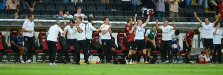 Vier Minuten später läuft sich Meier im Strafraum fest, dreht ab und baut das Spiel mit einem Rückpass auf den kurz zuvor für Rode gekommenen Celozzi neu auf. Der spielt einen Doppelpass mit Jung und überlistet damit die rechte Abwehrseite, um herrlich in die Mitte zu flanken. Meier blockt einen Verteidiger und der ebenfalls eingewechselte, nun freistehende Lanig wuchtet den Ball mit einem tollen Kopfballaufsetzer zum 2:1 ins rechte Toreck (82.). Leverkusen versucht zu reagieren, doch bis auf einen Kopfball von Kießling (84.) schaffen sie es nicht mehr, Trapp ins Schwitzen zu bringen. Kurz darauf ist es soweit, nach einem furiosen Spiel gewinnt die Eintracht trotz Sportkamerad Kinhöfer ihr erstes Bundesligaspiel, um sich von den begeisterten Fans völlig zu Recht feiern zu lassen. (tr)