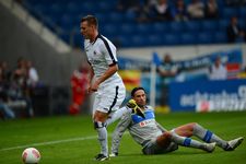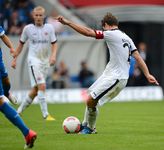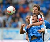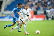 Mal eben kurz… Spitzenreiter! “Natürlich können wir schönen Fußball spielen. Aber wir sind nicht naiv. Im Fußball muss man auch mal was anders machen, nicht immer das Gleiche. Wenn es Gründe gibt, gestalten wir unser Spiel defensiver“, erklärt Armin Veh nach dem beeindruckenden Heimsieg gegen Leverkusen, um für das erste Auswärtsspiel in Hoffenheim anzukündigen: “Ich möchte, dass die Jungs selbstbewusst ins Spiel gehen. Wir wollen auch auswärts unser Spiel durchsetzen und werden dazu unsere Marschroute haben. Wir dürfen uns nicht einigeln lassen und wollen auch auswärts frech sein.“ Und zwar mit der gleichen Mannschaft, die gegen Leverkusen drei Punkte geholt hat, so dass Aigner und Inui auf den Außenpositionen wieder den Vorzug vor Kittel und Köhler erhalten und Zambrano sowie Anderson die Innenverteidigung bilden. Überraschen lassen wird er sich vom Trainer der Kraichgauer wohl nicht, schließlich kennt er ihn noch aus Stuttgarter Zeiten. Nachdem Armin Veh Markus Babbel am 23. September 2006 beim 1:1 gegen die Eintracht offenbarte, dass er nicht mehr mit ihm als Spieler plane, machte er ihn am Ende der Saison zu seinem Co-Trainer beim VfB. Vehs Wertschätzung für Markus Babbel wird in Hoffenheim inzwischen nicht mehr uneingeschränkt geteilt. Nach dem blamablen Ausscheiden im DFB-Pokal gegen den Viertligisten Jena, der Auftaktniederlage in Mönchengladbach sowie nur einem Sieg aus den letzten 12 Heimspielen wird es unruhig bei der kleinen Anhängerschar des einstigen “dollen Dorfes“. So sieht sich der “inoffizielle Klubeigner“ Dietmar Hopp genötigt, die Fans zu Freigetränken einzuladen, um für Ruhe im eigenen Haus zu sorgen. "Wir haben versucht, ihnen viele Ängste zu nehmen", berichtet Markus Babbel über das Treffen, in dem er verspricht: "Wir wollen unseren Fans einen Sieg schenken." Wie angekündigt, sortiert er hierfür Rechtsverteidiger Beck aus und ersetzt ihn durch den Fürther Neuzugang Schröck. Wie zuletzt bildet Derdiyok vor dem offensiven Dreiermittelfeld mit Vukcevik, Volland und Firmino die einzige Spitze. Der Sechs-Millionen-Mann Joselu von Real Madrid steht heute erstmals im Aufgebot, muss aber zunächst auf die Bank. Richtig laut ist es, als die Spieler auf den Rasen kommen, allerdings nicht beim Anhang der Gastgeber, sondern bei den knapp 6000 Eintracht-Anhängern, die ein Heimspiel in Sinsheim kreieren. “Es war Gänsehaut als wir rauskamen. Das ist wirklich was Besonderes und das ist das, was den Fußball ausmacht“, zeigt sich nicht nur Kapitän Schwegler begeistert. Und so starten sie auch, als wären sie die Gastgeber. Ruhig bestimmen die Frankfurter das Mittelfeld mit sicherem Aufbauspiel, während Hoffenheim auf Konter im eigenen Stadion zu lauern scheint. So schlägt Rechtsverteidiger Schröck eine lange Flanke vor den Fünfmeterraum, wo Jung das Leder gerade so vor Firmino weggrätschen kann. Der Ball trudelt zu Vukcevic, der jedoch so umständlich agiert, das Anderson dazwischen gehen und Zambrano klären kann (2.).