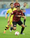 Zunächst landet jedoch ein Freistoß von Schmelzer im Frankfurter Strafraum, wo Blaszczykowski das Leder zu Kehl zurück köpft. Statt direkt zu schießen, versucht er ihn zu stoppen, aber Schwegler will genau diesen Ball und erkämpft ihn sich, um sofort nach vorne zu rennen und Inui am Mittelkreis zu bedienen. Der startet den Turbo, sieht aber, dass Aigner sich vor dem rechten Strafraumrand freiläuft und spielt ihm die Kugel mit einem tollen Pass auf den Schlappen. Aigner versetzt Schmelzer mit einem Haken, zieht nach innen und von dort per Dropkick aus 15 Metern ab. Wie an der Schnur gezogen landet der Ball zum 1:2-Anschluss im linken Toreck (49.). Keine zwei Minuten später rollt die Frankfurter Offensive über Meier, Rode und Jung erneut. Jung sprintet bis zur Mitte der gegnerischen Hälfte und passt flach an Schmelzer vorbei in den Lauf von Aigner, der weder von Schmelzer noch von Hummels zu halten ist, um das Leder butterweich in den Strafraum zu flanken. Während Kehl, Subotic und Piszczek den freien Raum konsequent decken, kann sich Inui vor den langen Pfosten schleichen und köpft das Leder gegen die Laufrichtung von Weidenfelder per Aufsetzer in die Maschen (51.). “Wir haben uns in den ersten fünf Minuten der zweiten Halbzeit einfach überrennen lassen“, ärgert sich Kehl über den Ausgleich, während TV-Kommentator Fritz von Thurn und Taxis ob Inuis erstem Kopfballtor zu Höchstform aufläuft: “Die jungen wilden Frankfurter überfallen den Deutschen Meister!“ Die Borussia wirkt kurz völlig von der Rolle, demonstriert danach aber mentale Stärke und greift ebenso munter an, wie die Eintracht dagegen hält. Dann die 54. Minute, Kehl erläuft einen zu kurzen Befreiungsschlag von Oczipka und spielt die Kugel prompt zurück. Anderson erläuft sich vor Götze den Ball, doch statt diesen sofort zu Trapp zu spielen oder ins Aus zu schlagen, lässt er sich im Strafraum prompt vom hinter ihm drängenden Götze düpieren und verliert das Leder. Der 20-jährige Nationalspieler bedankt sich und schiebt den Ball an Trapp vorbei zur erneuten Führung ins Netz.