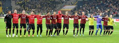 Der weitergeht, denn während sich das Waldstadion längst in ein Tollhaus verwandelt, denkt die Eintracht gar nicht daran, das Ergebnis zu verwalten. Das Spiel wogt weiterhin hin und her, auch wenn es jetzt nicht die großen Möglichkeiten gibt und nur ein Freistoß von Oczipka, den Weidenfelder parieren kann, für Gefahr sorgt (80.). In den Schlussminuten wirft der deutsche Meister dafür noch einmal alles nach vorne, in der 85. Minute klärt die Eintracht-Abwehr gemeinsam, zwei Minuten später wuselt sich Götze durch den Sechszehner, aber Trapp kann das Leder unter sich begraben. Ein Fehler von Anderson bringt den BVB noch einmal gefährlich vor das Tor, doch zum Glück kann Zambrano mit einer Grätsche aufräumen (90.). Aber als Subotics Fallrückzieher von Schwegler auf der Linie geklärt werden kann, die Abseitsfahne aber bereits oben ist und Aigner sofort den Turbo einschaltet, ist es um Jürgen Klopps Nervenkostüm endgültig geschehen. “Das war ein Foul! Das war ein Foul! Das war ein Foul!“ schreit er den vierten Offiziellen an und darf die letzte Ecke der Frankfurter, bei der ganz Dortmund noch einmal das kollektive Zittern bekommt, aus der Kabine verfolgen. Nachdem diese nichts bringt, reißen sie unter dem ohrenbetäubenden Jubel der Zuschauer die Arme hoch. Ein 3:3, dass sich nach einer herausragenden zweiten Halbzeit wie ein Sieg anfühlt. Die Eintracht bleibt auch im fünften Spiel ungeschlagen und liegt weiterhin auf Rang 2 in der Tabelle, nachdem die Bayern ihren fünften Sieg einfahren können. (tr)