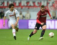 Augsburg berappelt sich schnell und antwortet mit mutigem Spiel, doch die Eintracht wird von Minute zu Minute stärker und ballsicherer, um nach 14 Minuten zur nächsten Möglichkeit zu kommen, die Klavan gegen den durchbrechenden Matmour vehement mit einem Klammergriff unterbindet. Glück für den Estländer, dass Schiedsrichter Meyer dies nicht als Notbremse wertet und nur Gelb zückt. Aber auch gegen elf Mann übernehmen die Frankfurter die Spielkontrolle. “Die frühe Führung hat uns gut getan, wir waren im Vergleich zum letzten Heimspiel wieder viel spritziger.“ In der Tat, diesmal geht es über rechts dem enorm fleißigen, immer wieder auf die Flügel ausweichenden Matmour und Jung, der für Meier im Strafraum auflegt. Dessen Direktschuss kann Langkamp für seinen bereits geschlagenen Torhüter nach vorne blocken, wo Matmour aus der Drehung allerdings nur das Außennetz trifft (22.). Der zweite Treffer liegt in der Luft, wieder treibt Jung nach einem öffnenden Pass von Meier die Kugel voran und will es wissen. Aber sein Schuss aus gut 20 Metern rauscht weit über die Latte, während Trainer Weinzierl den ebenso überforderten wie rotgefährdeten Innenverteidiger Klavan vom Platz nimmt und Sankoh bringt (29.).