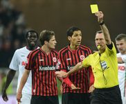 Und Augsburg? Außer einem Schüsslein von Ottl, der vor drei Jahren ein Engagement bei der Eintracht ablehnte, ist nichts von ihnen zu sehen. Dafür bekommt Rode die Mittelfranken schmerzhaft zu spüren, nachdem ihm Ottl bei einem Kopfballduell mit dem Ellbogen ins Gesicht schlägt, so dass dieser blutüberströmt zu Boden sinkt und zum verarzten in die Kabine geht. “Seppl ist es mir wert, fünf Minuten in Unterzahl zu spielen“, erklärt Armin Veh, während Matmour zu seiner nächsten Gelegenheit kommt. Torhüter Amsif spielt ihm den Ball nach einem Rückpass genau vor die Schlappen, doch der Mittelstürmer wider Willen beweist, dass er leider kein Knipser ist. Er legt sie sich zurecht, schlenzt die Kugel aber dennoch aus 18 Metern über den verwaisten Kasten (43.). Dies rächt sich, als es in der 45. Spielminute Eckstoß für die Gäste von der linken Seite gibt, den Beyer scharf vor den kurzen Pfosten flankt. Oczipka klärt nicht energisch genug, so dass sein Kopfballaufsetzer bei Koo landet, der aus 14 Metern per Dropkick zum 1:2 verwandelt. Mit Wut im Bauch gehen die Frankfurter in die Kabinen und kommen als Elf wieder heraus. Denn Rode wurde mit sechs Stichen über der rechten Augenbraue genäht, um jetzt so richtig aufzudrehen. Augsburg wird an den Strafraum zurück gedrängt, während Oczipka nur das Außennetz trifft (49.) und ein immerhin spektakulärer Fallrückzieher von Anderson neben dem Kasten landet (50.). Kurz darauf darf wieder mit der Zunge geschnalzt werden, als Rode nach einer Balleroberung von Jung einen schönen Außenristpass zu Aigner spielt, der den Ball im Sprint mitnimmt, um ihn nicht blindlings in die Mitte zu flanken, sondern an der Torauslinie zurück zu legen. Genau zu Meier, der die Kugel aus elf Metern präzise gegen die Laufrichtung des Torhüters ins rechte obere Toreck setzt (52.). Klasse! Und nicht nur der Trainer denkt: “Da war das Spiel eigentlich gegessen.“ Eigentlich… Zwar spielt die Eintracht nun wie im Rausch und erarbeitet sich Chancen im Minutentakt. Doch weder Anderson noch Matmour, Meier oder Inui können den finalen Stoß setzen. “Bei unserem Spiel darf es nicht zu überraschenden Ballverlusten kommen“, unkt derweil Heribert Bruchhagen. Denn tatsächlich leitet ein leichtfertig von Aigner auf Höhe der Trainerbank gegen Ostrzolek verdattelter Ball die zweite Chance für die Gäste ein. Werner sprintet auf links nach vorne und flankt hoch in den Sechzehner zu Oehrl, der kurz zuvor für Vogt eingewechselt worden war. Der sieht den besser postierten Mölders und legt die Kugel quer, so dass dieser keine Mühe hat, sie zum 2:3 ins Netz zu schieben (64.). “Natürlich habe ich mich gefragt, warum ich den Ball nicht einfach weggehauen habe“, ärgert sich Aigner, während Armin Veh nur die Schultern zuckt: “So ein Fehler kommt immer mal vor.“