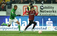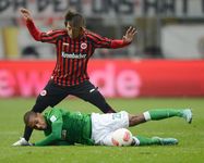 Danach wird es hitzig auf dem Platz, de Bruye vernascht Butscher am rechten Strafraumeck, setzt seinen Schuss aus 14 Metern aber am langen Pfosten vorbei. Es mehren sich nun die Nickligkeiten auf beiden Seiten, wobei Aytekin bei den Frankfurter Fouls viel schneller die Gelbe zückt als bei denen der Gäste, so dass die Eintracht zumindest nach Verwarnungen mit 4:1 zur Pause führt. Ohne Wechsel geht es in die zweite Halbzeit, die die Frankfurter energischer und bereits in der Hälfte der Gäste druckvoller beginnen. So setzt Inui erfolgreich nach, als Selassie sich den Ball vor ihm erobert, aber auf dem feuchten Geläuf wegrutscht. Zunächst scheitert der Japaner aus 15 Metern an Torhüter Mielitz, um den Nachschuss aus linker Position über die Latte zu hämmern (46.). Kurz darauf gibt es Einwurf für die Eintracht, den Oczipka ausführt und die Kugel unbedrängt zurückbekommt. Ein kurzer Blick, dann flankt er butterweich vor den Fünfmeterraum. Prödl steht und schaut, während Meier hoch steigt, um den Ball zum 1:0 genau ins linke Toreck zu köpfen (47.). Klasse, es ist bereits das zehnte Saisontor von Meier, der seinen insgesamt 68. Treffer für die Frankfurter erzielt und damit die Marke von Anthony Yeboah einstellt. Mit Wut im Bauch spielt Bremen jetzt nach vorne, doch Prödls Versuche, seinen Fehler gut zu machen, scheitern zunächst am nötigen Zielwasser (49./50.). Dann aber misslingt Occéan eine Ballannahme mit der Brust gründlich. Junuzovic schnappt sich das Leder und schlägt es auf die rechte Seite, wo Arnautovic startet und von Oczipka nicht gehalten werden kann. Der Österreicher flankt mit viel Effet nach innen, wo sich Petersen zwischen Zambrano und Butscher freiläuft und per Kopf aus kurzer Distanz ausgleicht (54.). “Da dachte ich nur: wenn wir jetzt in Wolfsburg noch Unentschieden spielen, haben wir wieder diese 26 Punkte“, meint Alexander Meier in Anspielung auf die Abstiegssaison unter Michael Skibbe. Aber in diesem Jahr gibt es kein Zaudern und Verzagen, die Frankfurter wollen gewinnen und spielen weiter nach vorne. "Das war imponierend, wie sie das weggesteckt und einfach weiter nach vorne gespielt hat. Die Mannschaft hört einfach nicht auf“, lobt Armin Veh.