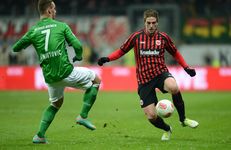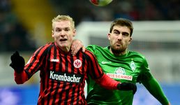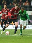 Doch damit nicht genug. Knapp 90 Sekunden später spielt Oczipka die Kugel vor das linke Strafraumeck, wo Occéan zu spät startet, so dass Sokrates unter dem Gestöhne einiger Zuschauer an den Ball kommt. Kein Verdruss, im Gegenteil. Der Kanadier setzt nach, erobert sich das Leder und läuft in den Strafraum, um es gekonnt in die Mitte zu legen. Schmitz rutscht aus, so dass Aigner an den Ball kommt und ihn überlegt an Torhüter Mielitz vorbei zum 3:1 ins Netz schiebt (63.). Schöner als das Tor ist die Reaktion der Spieler, die sofort zu Occéan rennen, um ihn zu herzen. “Die aktuelle Mannschaft hat ihren Namen verdient, sie hält zusammen. Jeder denkt in erster Linie an das Team, stellt sich in den Dienst der Mannschaft. Das war vor zwei Jahren ein wenig anders. Auch von der Mentalität und vom Charakter her sehe ich keine Parallele zum Team von vor 2 Jahren“, erklärt Kapitän Schwegler. Aber noch ist es nicht gelaufen, denn Bremen drängt auf den Anschluss, während sich die Frankfurter jetzt etwas zurückziehen und die Räume eng machen. Trotzdem hat Arnautovic nach einem Geplänkel im Halbfeld plötzlich Platz und taucht frei vor Torhüter Trapp auf. Er könnte quer auf den völlig frei stehenden Elia passen, entscheidet sich zum Glück aber für einen Direktschuss aus 15 Metern, den Trapp parieren kann (69.). Kurz darauf muss der wie ein Rohrspatz mit Arnautovic schimpfende Elia vom Platz. Für ihn kommt Füllkrug, nachdem zwei Minuten zuvor bereits Ignjovski für Junuzovic ins Spiel kam. Bremen bemüht sich weiter, aber sie leisten sich zu viele Ungenauigkeiten, zumal die Frankfurter geschickt die Räume zustellen und den nötigen Biss zeigen. Schön für die Fans, die inzwischen wieder froh gelaunt vom Europacup im nächsten Jahr singen. Brenzlig wird es erst wieder in der 88. Spielminute, als Arnautovic sich auf der rechten Seite gegen Inui durchsetzt und in den Lauf des startenden Selassie spielt. Der Tscheche scheitert im Eins-gegen-Eins aber am stark reagierenden Trapp (88.).