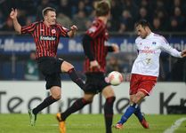 Der Konter zeigt Wirkung bei den bislang ungestüm angreifenden Hanseaten, die zwar gut zwei Minuten später nach Doppelpass zwischen Son und Aogo gefährlich stürmen, Trapp aber den Pass vor Rudnevs abfangen kann. Ansonsten konzentrieren sich die Gastgeber in den kommenden Minuten auf ein biederes Querpassfestival um die Mittellinie herum. Van der Vaart lässt sich weit zurück fallen und die Angriffsversuche über die Außen gestalten sich so bieder, dass die Frankfurter keine Probleme haben, den aufnehmenden Spieler gebührend zu empfangen. So ergibt sich die nächste Chance nach einer Ecke, die Trapp aus dem Strafraum boxt. Aogo nimmt den trudelnden Ball volley, zimmert ihn aber ebenso in die Wolken wie seinen Distanzschuss fünf Minuten später (21.).