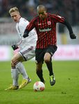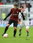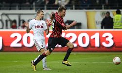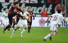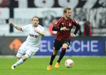 Und die Eintracht? Die kommt immerhin in der 30. Spielminute gefährlich vor den Sechszehner, doch Simons lässt Rode mal eben über die Klinge springen. So gibt es Freistoß aus zentraler Position. Oczipka tippt die Kugel mit der Sohle zur Seite, wo Meier abzieht, das Leder aber um Zentimeter neben das rechte Lattenkreuz schlenzt (31.). Diese Chance verpassen die meisten Club-Anhänger wohl, die nun teilweise wieder in ihren Stehblock drängen, sehen dafür aber ihre Mannschaft über die rechte Seite kommen. Chandler vernascht Inui, zieht Oczipka auf sich und passt sogleich vor die Eckfahne, wo Feulner jetzt Platz hat und vor den kurzen Pfosten flankt. Bedrängt von Zambrano kommt Pekhart ran, findet mit seiner Direktabnahme allerdings seinen Meister in Trapp, der den Aufsetzer zur Ecke lenkt (34.). Nur drei Minuten später sorgen die Gäste erneut im Frankfurter Strafraum für helle Aufregung, nachdem Pinola und Balitsch mit Jung Katz und Maus spielen, um die Kugel an den Elfmeterpunkt zu legen. Diesmal prallt der Schuss von Pekhart gegen den rechten Arm von Rode und kann geklärt werden. Glück für die Eintracht, denn Schiedsrichter Dingert erkennt hierin kein Handspiel. Herrje, was für ein Auftritt, denkt sich Minuten später wohl Anderson. Von der Mittellinie aus zieht er mit dem Leder nach vorne, ist wohl selbst überrascht über den Platz, der ihm gewährt wird und läuft bis kurz vor den Strafraum, um einfach beherzt abzuziehen. Sein Schuss rauscht knapp einen Meter über den linken Torwinkel ins Aus (43.), ist aber dennoch die zweite nennenswerte Chance für die Eintracht in diesem Spiel, dass torlos in die Pause geht.