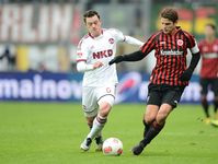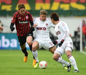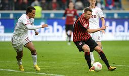 Bericht und Fotos von www.eintracht.de: 0:0 gegen Nürnberg Am 21. Spieltag trennten sich die Frankfurter Eintracht und der 1. FC Nürnberg leistungsgerecht unentschieden. 45.400 Zuschauer sahen die umkämpfte, jedoch torlose Partie in der Commerzbank-Arena. Gegen den 1. FC Nürnberg schickte Cheftrainer Armin Veh die gleiche Startelf auf den Platz, die vor einer Woche drei Punkte beim Hamburger SV entführen konnte. Auch Carlos Zambranos Einsatz war möglich – der Peruaner war nach Schwierigkeiten auf der Rückreise von seinem Länderspieleinsatz erst am Samstagvormittag zur Mannschaft gestoßen. Bevor das Match begann, verabschiedete Heribert Bruchhagen den langjährigen Stammspieler Benjamin Köhler, der nach der Hinrunde zum 1. FC Kaiserslautern gewechselt war. Benny Köhler bedankte sich für die schöne Zeit bei der Eintracht. Auch wir sagen: "Ganz herzlichen Dank für Deinen Einsatz, Deine Tore und Deine bodenständige Art, Benny. Mach’s gut und alles Gute!" Dann ging die Partie los. Die Spielweise der Eintracht in den Anfangsminuten lässt sich am besten mit kontrollierter Offensive umschreiben. Die Frankfurter hatten deutlich mehr Ballbesitz und versuchten, dem gegnerischen Tor in erster Linie mittels Kurzpassspiel nahe zu kommen. In der vierten Minute hatten sie prompt eine dicke Chance, als sie den Ball für den in den Strafraum sprintenden Aigner durchließen. Der Ex-Münchener umkurvte seinen Gegenspieler Klose, der – als er den Frankfurter im Sechzehner einholen wollte – Aigner so am Bein traf, dass dieser nach zwei weiteren Schritten zu Fall kam. Die Pfeife von Schiedsrichter Dingert blieb jedoch stumm. Umgekehrt pfiff der Referee aber auch nicht, als in der 35. Minute ein Frankfurter im eigenen Strafraum am Arm angeschossen wurde – ausgleichende Gerechtigkeit, wenn man so will. Doch zurück zum Beginn der Partie: Die nächste Chance hatte die SGE in der 11. Minute durch einen Konter: Der von Meier bediente Inui zog in die Mitte, sein Schuss konnte jedoch leider im letzten Moment geblockt werden und war damit für Schäfer leicht zu halten. Dass in dem spielstarken Frankfurter Team alles stimmt, zeigte sich nur kurz später: Inui half hinten mit aus und gewann im eigenen Sechzehner einen wichtigen Zweikampf. In der Truppe rennt jeder für jeden – großartig! Trapp unterstreicht in ausgeglichenem Spiel seine Klasse Fortan kam allerdings Nürnberg besser ins Spiel. In der 21. Minute hatten die Franken eine dicke Chance, als der auf links freigespielte Pinola nach innen passte und Frantz im Strafraum direkt abzog. Trapp – man ist es von ihm ja nicht anders gewohnt – zeigte jedoch eine Glanzparade und verhinderte den Gegentreffer. Nur drei Minuten später war erneut ein Nürnberger gefährlich nahe vor dem Eintracht-Kasten und kam zum Abschluss. Trapp blieb jedoch cool stehen und konnte so den Schuss halten. Es war abermals eine herausragende Tat des jungen Keepers! In dem nun recht ausgeglichenen Spiel hatte unser „Langer“ in der 29. Minute die nächste Großchance. Die Eintracht hatte einen Freistoß nahe der Strafraumgrenze. Dabei legte Oczipka Meier auf, der den Ball beinahe ins rechte obere Toreck gedroschen hätte. Leider strich die Kugel jedoch haarscharf am Lattenkreuz vorbei – sie berührte noch das Außennetz. Die Nürnberger – auf Konter lauernd – standen in den folgenden Minuten defensiv gut und machten es dem Heimteam schwer, freie Anspielstationen zu finden. Symptomatisch dafür war eine Szene in der 42. Minute, als der ballführende Frankfurter Abwehrspieler Anderson immer weiter nach vorne dribbelte, weil er keinen ungefährlichen Offensivpass spielen konnte. Schließlich war der Brasilianer dem Tor so nahe, dass er aus etwa 25 Metern einfach mal selbst draufhielt. Leider flog sein Schuss über den Kasten. Wenig später verschwanden die Teams mit einem gerechten 0:0 zum Pausentee. 2. Halbzeit Bei ganz leichtem Schneefall kam die Eintracht etwas frischer aus der Kabine als der 1. FC Nürnberg. Man merkte den Hessen den Willen an, nun mehr Dampf machen und ein Tor erzielen zu wollen. Ein Beispiel hierfür war eine sehenswerte Grätsche das Frankfurter Kapitäns Schwegler in Höhe der Mittellinie, die eine – leider letztlich erfolglose – Kontergelegenheit einleitete. In der 51. Minute kam dann, nach einem schönen Spielzug über mehrere Stationen, Inui im Strafraum zum Abschluss. Seinen Flachschuss konnte der Schlussmann der Gäste jedoch parieren. Leider sollte dies auch für mehrere Minuten die letzte große Gelegenheit der SGE bleiben. Sie machte ihre Sache zwar bis auf kleinere Stoppfehler oder ungenaue Pässe nicht schlecht, doch der Gegner war nun auch wieder im Spiel und vor allem regelmäßig da, wenn es drohte, brenzlig zu werden. So plätscherte die Partie vor allem im Mittelfeld dahin; keinem Team gelang es wirklich, Struktur in die ebenso umkämpfte wie in dieser Phase zerfahrene Partie zu bringen. Die Fans hielten sich derweil mit Hüpfgesängen warm. Kurz nach einer nennenswerten Meier-Chance in der 70. Minute – unser Goalgetter wurde geschickt angespielt, lief etwa 20 Meter in den gegnerischen Strafraum, kam dort jedoch nicht mehr kontrolliert zum Abschluss – wechselte Veh Matmour für Inui ein. In der 76. Minute war es erneut Meier, der einen SGE-Angriff abschloss. Per sehenswertem Lupfer hatte Rode Oczipka freigespielt. Der frühere Leverkusener lief ein paar Meter und passte dann zurück in den Strafraum, wo Meier sofort mit dem Innenrist abschloss. Leider stand Schäfer goldrichtig und konnte den Schuss halten. Gleiches galt erfreulicherweise auch für Trapp in der 80. Minute. Im Rahmen eines Konters kam ein Nürnberger an der Strafraumgrenze frei zum Schuss, doch der SGE-Schlussmann hielt den Ball – ebenso wie bei einer Nürnberger Chance in der 87. Minute – im Nachfassen fest. Kurz vor Schluss kam noch Kittel für Aigner. Trapp musste in den Schlussminuten noch einen Nürnberger Konter entschärfen – am 