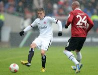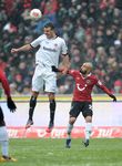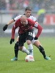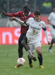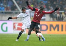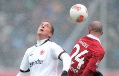er nicht, dass er sich freut? Und was hat es mit dem “Er ist einer unserer erfolgreichsten Trainer der letzten zwanzig Jahre, es kann nur unser Ziel sein, ihn zu halten“, betont unterdessen Heribert Bruchhagen nach jüngsten Aufsichtsratssitzung, in der beschlossen wurde, den Etat für die kommende Spielzeit von aktuell 26 auf rund 30 Millionen Euro anzuheben. “Wir haben die Tür für weitere Maßnahmen geöffnet bekommen“, erklärt der Vorstandsvorsitzende und ergänzt: “Armin weiß, dass Eintracht Frankfurt ein toller, solide geführter Verein ist, der nicht verschuldet ist. Und wenn wir im nächsten Jahr Dreizehnter werden sollten, spielt keiner bei uns verrückt.“ Zunächst gilt es jedoch, in Hannover nicht verrückt zu spielen und wenn möglich die “verdammte“ 40-Punkte-Marke mit einem Sieg zu knacken, damit sich Armin Veh endlich zu seinen Planungen äußert. Da Rode gelbgesperrt fehlt und Lakic – obwohl er im Mannschaftstraining voll mittrainiert - nach Ansicht des Trainers noch nicht für 90 Minuten fit ist, lässt er seine Mannschaft wie schon in Freiburg und in der zweiten Halbzeit gegen Gladbach ein System mit Raute spielen, in dem Matmour und Aigner als Spitzen agieren und Celozzi sowie Meier vorwiegend über die Außen kommen sollen. Zehn Siege, elf Niederlagen. Zu Hause hui, auswärts pfui ist das Motto der Niedersachen in dieser Saison. Als drittbestes Heimteam haben sie die letzten fünf Heimspiele gewonnen, doch auswärts sind sie schlechter als Fürth und Hoffenheim. Zumindest die Heimserie soll halten, schließlich kann der Tabellenzehnte mit einem Sieg gegen die Eintracht den Anschluss an die internationalen Plätze herstellen. Nicht einmal bundesligareif ist indes das Verhältnis zwischen Trainer Slomka und Manager Schmadtke, die nur noch über E-Mails miteinander kommunizieren, so dass Clubchef Martin Kind unter der Woche ein Gespräch anberaumt, um die Zwistigkeiten auszuräumen. Immerhin spricht Mirko Slomka mit seinen Spielern und setzt auf den wieder genesenen Diouf, der zusammen mit Abdellaoue das Sturmduo vor den beiden Außen Ya Konan und Pander bildet. “Wir wollen etwas defensiver stehen, um nicht in Konter zu laufen“, gibt Armin Veh seinen Spielern auf den Weg, die sich zunächst mit heftigem Schneetreiben und erstaunlich abwartend spielenden Niedersachsen auseinandersetzen müssen. Viele Querpässe und unplatzierte lange Bälle der Gastgeber machen es der Eintracht nicht schwer, ihre Defensive dicht zu halten. Auch im Mittelfeld läuft der Ball bei den Frankfurtern, doch eine Lücke finden auch die Gäste nicht. So ist es ein zähes Ringen im Mittelfeld, bis Pocognoli auf der linken Außenbahn mal etwas Platz hat und das Leder mit viel Effet vor den Fünfmeterraum schlägt. Bedrängt von Oczipka kann Abdellaoue die Kugel am rechten Fünfereck aber nur in die Wolken köpfen (11.). Vier Minuten später sorgt ein Freistoß von Pander aus dem Halbfeld für ein Raunen. Der Ball landet vor dem Tor und kein Frankfurter Abwehrbein ist in der Nähe, aber sowohl Ya Konan als auch Diouf kommen einen Schritt zu spät, so dass er ins Toraus trudelt.
