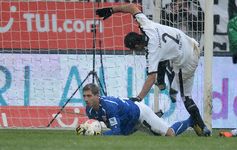 Diese schnelle Aktion bleibt die Ausnahme. Zwar hat die Eintracht die bieder spielenden Niedersachsen einigermaßen im Griff und offenbaren in der Mitte keine Räume für Konter, aber ansonsten bleibt es beim souveränen, aber wenig effektiven Kurzpassspiel, bei dem Matmour und Aigner vorne in der Luft hängen und Inui sich allzu oft verzettelt. So kann das Spiel die frierenden Zuschauer weiterhin nicht eben erwärmen, sofern sie kurz vor der Pause noch auf ihren Plätzen sind. Die Glühweinansteher verpassen jedenfalls den zweiten schnellen Spielzug der Eintracht, nachdem Anderson einen Angriff der Niedersachsen abfängt und Inui die Kugel zu Meier spielt, um selbst nach vorne zu sausen. Meier spielt flach auf Celozzi an der Strafraumgrenze, der direkt für Inui ablegt. Der Japaner hat drei Gegenspieler um sich, findet aber die Lücke, um den Ball vor das rechte Fünfereck zu legen. Jung will zum einschussbereiten Aigner schieben, doch Pocognolies Grätsche rettet für die Roten (40.). “Die Handschuhe waren nass, ich habe meine Finger kaum gespürt, das war ein ekliges Spiel“, erzählt der beschäftigungslose Trapp zur Pause. Er bezieht dies nur auf das Wetter. Sagt er jedenfalls... Ohne Wechsel geht es in den zweiten Durchgang, in dem Hannover sich endlich zu bemühen scheint, in Richtung Frankfurter Tor zu spielen. Chahed tankt sich auf der rechten Außenbahn durch und flankt in die Mitte, wo die Kugel auf dem nassen Geläuf an Abdellaoue vorbei zu Diouf glitscht, der sie mit der Brust stoppt und aus 16 Metern volley abzieht. Torhüter Trapp hat wieder trockene Handschuhe an, mit denen er den Ball über die Latte lenken kann (46.). Hannover bleibt jetzt am Drücker und brandgefährlich wird es zwei Minuten später, als Pander einen Freistoß von halblinks vor den rechten Pfosten schlenzt. Djourou legt per Kopf an Trapp vorbei in die Mitte ab, wo Ya Konan zum Seitfallzieher ansetzt. Der Torhüter ist geschlagen, aber Schweglers linker Oberschenkel rettet in allerletzter Sekunde auf der Linie, während die Roten ihren Treffer noch Bejubeln. Denn Schiedsrichter Dankert hat Adleraugen und lässt, wie es Zeitlupe und Standbilder beweisen, zu Recht weiterspielen, was auch dem Kevin Trapp sehr behagt: “Ich denke, heute kann man dem Schiri glauben."