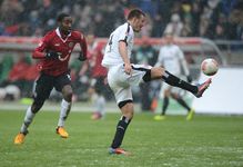 Bericht und Fotos von www.eintracht.de: Punktgewinn in Hannover Am 25. Spieltag konnte die Frankfurter Eintracht bei Hannover 96 einen verdienten Punkt entführen. Vor 44.800 Zuschauern trennten sich die Hessen und die Niedersachsen in der AWD-Arena 0:0 unentschieden. Zum Auswärtsspiel bei Hannover 96 änderte Armin Veh die Startaufstellung auf zwei Positionen. Im Vergleich zur Partie gegen Gladbach rückte Celozzi für den gelbgesperrten Rode ins Team, zudem lief Matmour für Lakic auf. Der konstante Schneefall verlangte der Rasenheizung alles ab und sorgte für einen seifigen Untergrund, der beiden Mannschaften das Leben schwer machte. Die Eintracht hat das Spiel im Griff Gleich in der ersten Minute setzte die Eintracht eine Duftmarke, als Aigner im Strafraum fast zum Abschluss gekommen wäre, sein Gegenspieler Schulz jedoch einen Freistoß zugesprochen bekam. Auch in den folgenden Minuten machte die Eintracht das Spiel, wobei Aigner und Matmour im Grunde eine Doppelspitze bildeten, hinter der Inui – zentraler als gewohnt – und Meier das Offensivspiel ankurbelten. Celozzi spielte überwiegend auf der rechten Seite, rückte jedoch immer wieder in die Mitte ein. Das schwer ins Spiel findende Hannover hatte seine erste halbwegs nennenswerte Torchance in der 10. Minute, als Abdellaoue nach einer Flanke zum Kopfball kam, der jedoch weit über den Kasten strich. Kurz später war Anderson auf der Höhe, als er die verunglückte Ballannahme eines Mitspielers klärte (13.) – überhaupt machte der Brasilianer ein tolles Spiel. Gleichwohl hatte Hannover nun etwas mehr von der Partie, was sich auch an einem Pander-Freistoß aus dem linken Halbfeld zeigte, den jedoch sowohl Ya Konan als auch Djourou im Strafraum verpassten (15.). Anschließend war es wieder die Eintracht, die in der bis dato wenig aufregenden Begegnung zwei brauchbare Torchancen erspielte: In der 20. Minute setzte Matmour, der an der Strafraumgrenze lauerte, per Direktweiterleitung Inui schön in Szene, doch der Schuss des Japaners – ein Lupfer über den spät aus dem Tor kommenden 96-Keeper – konnte gerade noch entschärft werden. Nur zwei Minuten später zog Jung von der rechten Seite nach innen und schloss mit links ab. Allerdings wurde sein Schuss so abgefälscht, dass Zieler kein Problem hatte, den Ball aus der Luft zu pflücken. Riesen-Chance für die SGE kurz vor der Pause Danach plätscherte die Partie vor sich hin – gut stehende Defensivreihen und die mangelnde Bereitschaft beider Teams, bei Gleichstand und in einer so frühen Phase volles Risiko zu gehen, sorgten für ein begrenzt unterhaltsames Fußballspiel. Gerade den an sich sehr heimstarken und über eine torgefährliche Offensive verfügenden 96ern fiel gegen die spielbestimmende Eintracht wenig ein. Folglich hatten gute Torchancen Seltenheitswert. Allenfalls eine Freistoß-Flanke von Pander in der 28. Minute, nach der Schwegler im eigenen Strafraum gefoult wurde, und eine Ablage von Inui auf Meier, der sofort abzog, doch in letzter Sekunde beim Torschuss entscheidend gestört wurde (29.), lassen sich hier aufführen. So kam die vielleicht beste Torchance für die Eintracht in der 39. Minute eher überraschend: Der häufig über links agierende Meier bediente Inui, der an der Strafraumgrenze entlang dribbelte, keine Schussmöglichkeit für sich selbst sah und dann den freien Jung auf rechts entdeckte. Dessen Schuss konnte der geschickt den Winkel verkürzende Zieler leider zur Ecke klären. In der Folge probierte vor allem der quirlige Japaner in Diensten der SGE, Torgefahr zu kreieren, blieb jedoch im Abschluss harmlos. Nachdem auch ein Schwegler-Freistoß aus etwa 25 Metern über den Kasten strich, verabschiedeten sich die Teams mit einem 0:0 zum Pausentee. Eintracht-Sportdirektor Hübner analysierte treffend, dass die Eintracht defensiv ein prima Spiel machte, Hannover im Griff und die besseren Torchancen hatte. Trapp war zwar ein paar Mal am Ball, musste bis dato aber nicht einen Torschuss abwehren. Paukenschlag zu Beginn der zweiten Halbzeit Das sollte sich allerdings gleich in der 46. Minute ändern. Diouf kam an der Strafraumgrenze zum Abschluss – er stoppte einen halbhohen Pass und hämmerte den aufspringenden Ball sofort aufs Tor. Der SGE-Keeper war jedoch zur Stelle und konnte zur Ecke klären. Nur kurz später sollten zwei äußerst schwierig zu entscheidende Szenen auf beiden Seiten die Gemüter bewegen. Zunächst zog Pander einen Freistoß an den rechten Pfosten. Dort legte Djourou per Kopf zurück in die Mitte, wo Ya Konan den Ball per Seitfallzieher aufs Tor hämmerte. Schwegler konnte die Kugel zwar stoppen – die spannende Frage war allerdings, ob der Ball die Torlinie schon überquert hatte (49.). Während die Hannoveraner Fans noch protestierten, dass Schiedsrichter Dankert nicht auf Tor entschieden hatte, traf Meier in der gleichen Spielminute per Flachschuss zum vermeintlichen 1:0. Inui hatte ihn im direkten Gegenzug mit einem Pass in die Schnittstelle der Abwehr bedient. Auch bei dieser Szene erkannte der Referee allerdings nicht auf Tor. Meier soll haarscharf im Abseits gestanden haben – eine ebenfalls höchst knifflige Entscheidung. Zwar sollte das Spiel fortan keine ähnlich hochkarätigen Torchancen bereithalten, es war jedoch deutlich unterhaltsamer als in der ersten Halbzeit. Dies lag nicht zuletzt an den offensiver und mit mehr Zug zum Tor agierenden Niedersachsen, die nun ihrerseits zu Gelegenheiten kamen, den Gästen dadurch aber auch mehr Räume boten. Trotz guter Chancen will der Ball nicht ins Tor Die beste Chance der Eintracht in der Mitte des zweiten Durchgangs hatte Meier. Über Oczipka, Matmour und Aigner landete der Ball nach einem tollen Spielzug bei ihm, doch sein Innenristschuss war etwas zu hoch angesetzt und segelte über den rechten Torwinkel hinweg (60.). Eine weitere, gute Torgelegenheit erspielte sich die Eintracht in der 69. Minute, als sich ein Hannoveraner gerade noch in den Schuss des in Mitte zie