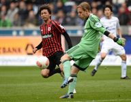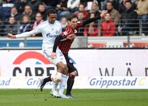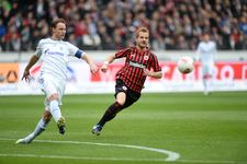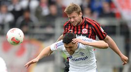 können wir das Niveau aus Nicht nur in Frankfurt wird international geträumt, auch in Schalke wollen sie ihren Platz behaupten. Denn die Champions-League-Qualifikation ist das erklärte Ziel von Manager Tönnies und Sportdirektor Heldt, die sich in der Trainerfrage weiterhin bedeckt halten. Denn obwohl der nach dem Abgang von Huub Stevens kritisch beäugte Jens Keller - der von 2002 bis 2005 für die Eintracht am Ball war - es schaffte, die Knappen von Platz sieben auf vier zu führen, bleiben sie skeptisch. Der langjährige Nachwuchstrainer gibt sich trotz des Geschwurbels um seine Person gelassen, auch wenn er in Frankfurt weiterhin auf Stürmer Huntelaar und auf Farfan verzichten muss: “Es liegt an uns, wie nah die Konkurrenz im Endspurt noch an uns heranrückt.“ Dafür vertraut er weitestgehend auf die Elf, die zuletzt ein 2:2 gegen Leverkusen holte. Anstelle von Moritz spielt Neustädter im defensiven Mittelfeld, so dass für Jermaine Jones wieder nur die Ersatzbank bleibt. Im Sturm ersetzt Marica weiterhin Huntelaar und der brasilianische Winter-Neuzugang Michel Bastos spielt auf der rechten Außenbahn. Es ist ein zerfahrener Start im ausverkauften Waldstadion, beide Mannschaften beharken sich im Mittelfeld und kämpfen um jeden Meter, so dass viele kleine Fouls das Spiel unterbrechen. Nach knapp zehn Minuten übernehmen die Gäste allerdings das Geschehen und kommen zu einer ersten Chance, als Russ das Leder im Halbfeld verliert. Der Ball kommt auf die rechte Seite zu Bastos, der Oczipka mit einem Tunnel narrt und damit Raum schafft für Höger, der zum Glück neben den linken Pfosten schießt (10.). Nur eine Minute später verschätzt sich Oczipka nach Neustädters Freistoß vom Mittelkreis, so dass Bastos die Kugel mit der Brust annehmen und aus halblinks abziehen kann, aber Nikolov kann mit dem rechten Fuß retten. Au Backe, der 24-jährige Linksverteidiger ist völlig von der Rolle, so dass sich Bastos nur Sekunden später wieder vor dem Sechzehner durchsetzen kann. Über Umwege gelangt das Leder zu Draxler, dessen Schuss aus 17 Metern aber knapp links am Tor vorbei streicht.