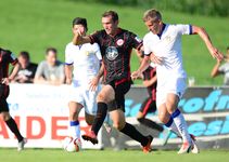 Der englische Traditionsverein Leeds United wartete als Testspielgegner auf unsere SGE. Die Frankfurter kamen auch gleich mit mächtig Zug ins Spiel. Nach den Torchancen von Inui (3.), Aigner (7., 11.) und Castaignos (10.) wussten die Engländer, was heute auf sie zukommen würde. Nach 14 Minuten zappelte dann auch erstmals der Ball im Netz, der Treffer von Aigner wurde aber aus einer klaren Abseitsposition erzielt und damit nicht anerkannt. Nach 20 Minuten musste Eintracht-Trainer Armin Veh den ersten verletzungsbedingten Wechsel vollziehen: Neuzugang Castaignos verließ das Feld, für ihn kam Waldschmidt in die Partie. Während die ersten Chancen der Hessen noch vom italienischen Torhüter Silvestri vereitelt wurden, stellte sich in der 22. Minute das Aluminium gegen den ersten Treffer des Spiels. Ein herrlicher Schuss von Inui klatschte an die Querlatte. Auf der anderen Seite ließ die erste Tormöglichkeit des englischen Zweitligisten bis zur 27. Minute auf sich warten, doch die saß dann auch direkt: Morison überwand Linder mit einem Schuss zum 1:0 Führungstreffer. Kurze Zeit später hatte Inui mit einer Doppelchance (32., 33.) den Ausgleich auf dem Fuß, doch die deutlich besseren Adlerträger sollten für ihre Mühen nicht belohnt werden - so blieb es beim 0:1 zur Pause. Fünf Minuten nach dem Seitenwechsel hätte es soweit sein können: Seferovic umspielte den Schlussmann der Engländer, brachte das Spielgerät dann aber nicht mehr im Tor unter. Das hätte das Team von Trainer Rösler fast eiskalt bestraft, doch Lindner parierte gegen Cook stark (54.) und hielt seine Vorderleute somit weiter im Spiel. Nach einer knappen Stunde war es dann endlich so weit. Nach einer Vorlage von Aigner traf Flum vor 1.500 Zuschauern zum mehr als überfälligen 1:1. In der 73. Minute versuchte sich Djapka am ruhenden Ball,