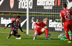 Gelungener Praxistest Die Eintracht gewinnt den Test gegen Sandhausen mit 2:1. Darüberhinaus sammeln viele Akteure Spielpraxis und das Trainerteam taktische Erkenntnisse. In etwa halber Kaderstärke bedeutete das Aufeinandertreffen mit dem Zweitligisten die sinnvollste Form eines Mannschaftstrainings in gesteigerter Intensität. Taktische Ideen konnten auf Großfeld getestet, Spielern mit zuletzt weniger Einsatzzeit eine Bewährungschance ermöglicht werden. Vom Stamm der Vorwochen blieben einzig Danny da Costa und Makoto Hasebe in der ersten Elf. In der Startformation stach neben der Nominierung von vier A-Junioren vor allem die taktische Anpassung von der gängigen Dreier- hin zu Viererkette ins Auge. Adi Hütter ließ seine Mannen im 4-4-1-1 antreten. Die Grundformation gestaltete sich bei gegnerischem Ballbesitz oftmals auch im 4-4-2, das die Adler nach Möglichkeit sehr offensiv und aggressiv interpretierten. Bei Ballgewinn ging es schnurstracks in die Spitze, wie beim ersten Führungstreffer, als Dominik Kohr auf den durchgestarteten Erik Durm chippte, der auf Jip Molenaar querlegte, welcher aus nächster Nähe zum 1:0 einschob (10.). In der Folge entwickelte sich ein munterer Herbstkick, bei dem beide Seiten nicht vollends lückenlos verteidigten. Der Ausgleich des von der Strafraumkante trocken abschließenden Philipp Klingmann war Mitte der ersten Halbzeit nicht unverdient (23.). Im Gegenzug fasste sich Kohr aus dem Hinterhalt ein Herz, fand aber in Rick Wulle seinen Meister (24.). Wiederum nur zwei Zeigerumdrehungen später konnte sich Felix Wiedwald gegen den allein vor ihm auftauchenden Aziz Bouhaddouz auszeichnen (26.). Nach einer halben Stunde war es erneut eine jener forschen Verteidigungsaktionen in vorderster Front, die die die erneute Führung provozierte, als Kohr eine Gegenpressingaktion nutzte, um Abdulkerim Cakar zu bedienen, woraufhin sich der zweite U19-Junior nicht lange bitten ließ (32.). Comeback von de Guzman So kurz die kaum achtminütige Halbzeitpause dauerte, ließen Chancen nach dem Seitenwechsel lange auf sich warten. Die erfreulichste Botschaft war denn auch die Einwechslung von Jonathan de Guzman nach einer Stunde. Es war gewissermaßen das Comeback für den Niederländer nach über zweimonatiger Verletzungspause. Ansonsten stand vor allem der erste nach der Pause eingewechselte Adler, Jan Zimmermann, im Fokus, als er binnen weniger Augenblicke zwei Mal seinen Mann stand (68., 69.). Auf der Gegenseite verströmten nochmal Cetin (79./pariert) und Durm (80./vorbei) etwas Gefahr, insgesamt war nach dem Seitenwechsel aber Sandhausen dem Ausgleich näher als Frankfurt der Vorentscheidung. Die letzte Aktion gehörte Timothy Chandler mit einem feinen Distanzschlenzer (89.). Fazit: Gelungener Praxistest Zugegebenermaßen hat niemand die Sterne vom Himmel gespielt, worauf es am Donnerstagnachmittag aber auch nicht ankam. Die Eintracht zog individuellen Nutzen (Spielpraxis) und kollektive Erkenntnisse (System) aus dem Härtetest. Am morgigen Freitag folgt das morgendliche Auslaufen am Tag nach einem Spiel, ehe sich die Adlerträger guten Gewissens ins freie Wochenende verabschieden dürfen.