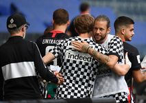 Guter Wille und etwas Spannung Das 34. Saisonspiel sollte für den bereits als Absteiger feststehenden SC Paderborn 07 zugleich bis auf Weiteres die letzte Bundesligabegegnung sein. Entsprechend hielt sich die sportliche Bedeutung in Grenzen, auf der anderen Seite erklärte sich der Wunsch der seit 14 Partien sieglosen Gäste, sich mit Anstand aus dem Oberhaus zu verabschieden von selbst. Umgekehrt blieb das Ziel der Eintracht, sich in der oberen Tabellenhälfte zu behaupten genauso unumstößlich wie das Vorhaben, Jonathan de Guzman, Gelson Fernandes und Marco Russ einen anständigen Abschied zu ermöglichen. Personal: Abschiede und Rückkehrer Wie angekündigt fand sich das Trio, deren Verträge zum Saisonende auslaufen, genauso im Kader wieder wie der seit drei Wochen wieder im Mannschaftstraining befindliche Goncalo Paciencia. Ohnehin stand Adi Hütter im 54. Spiel 2019/20 jeder Akteur zur Verfügung. Einzig Makoto Hasebe hatte sich in Japan einem Eingriff im Knie unterzogen, um zum Trainingsstart wieder zur Verfügung zu stehen. Auf dem Rasen fand sich im Vergleich zum 1:1 in Köln eine auf fünf Positionen veränderte Elf wieder. Kevin Trapp kehrte für Frederik Rönnow ins Tor zurück, Abraham ersetzte Stefan Ilsanker, außerdem kam Daichi Kamada nach abgesessener Gelbsperre für Lucas Torró ins Team und somit ein offensiver für einen defensiven Mittelfeldspieler. Nicht zuletzt starteten Danny da Costa und Dominik Kohr positionsgetreu für Timothy Chandler und Djibril Sow. Keine Zwänge, Eintracht zwingender Den Umständen geschuldet, nichts zu verlieren, aber etwas gewinnen zu können, verlegten sich beide Seiten erst gar nicht aufs Taktieren, sondern suchten nach Möglichkeit den kürzesten Weg nach vorne, wobei die Hausherren bei ihren Aktionen mehr Zug zum Tor entwickelten. Nachdem eine scharfe Hereingabe von Dominik Kohr aus dem rechten Halbfeld noch Bas Dost wie André Silva verpasst hatten (4.), war kurz darauf Kohrs Nebenmann im defensiven Mittelfeld zur Stelle, als Laurent Jans und Abdelhamid Sabiri zusammenrasselten und Sebastian Rode die Kugel von der Strafraumkante in die Maschen schlenzte (9.). Die als anfälligste Defensive der Bundesliga angereisten Ostwestfalen ließen sich vom frühen Rückschlag nicht beeindrucken und kamen in aussichtsreicher Position durch den gebürtigen Frankfurter Sabiri (18.) sowie Mohamed Dräger (30.) zum Abschluss, die aber beide verzogen. Effizienter dagegen die Eintracht, indem sich da Costa per Doppelpass mit Kamada über die rechte Außenbahn in den Strafraum durchtankte und in der Mitte Silva fand, der aus nächster Nähe zum 2:0 einschob (32.). Dost legt nach, Dräger und Michel verkürzen Die Kabinen wieder verlassen, blieben die Hessen durchweg im Vorwärtsgang, was alsbald im 3:0 durch Dost mündete, als der Niederländer nach Zuspiel der auf der rechten Seite freigespielten Dominik Kohrs unbedrängt sein achtes Saisontor erzielen konnte (52.). Kaum waren die Jubelstürme verstummt, durfte sich auf einmal der gleichzeitige Auf- und Absteiger feiern lassen, als Dräger nach einer Parade Kevin Trapps im zweiten Versuch von der rechten Seite an den langen Pfosten gerauscht kam und eher unbehelligt auf 3:1 verkürzte (55.). Auf der anderen Seite preschte Kohr einmal mehr über die etwas luftige Paderborner linke Abwehrseite durch, aber Leopold Zingerle war auf seinem Posten (68.). Als die Saison 2019/20 endgültig auszutrudeln schien, kamen die Gäste nach einer Frankfurter Ecke zu einem unverhofften Konter, den Sven Michel zum 3:2-Anschluss vollendete (75.). In der Nachspielzeit hätte der eingewechselte Jonathan de Guzman beinahe zur Vorentscheidung beigetragen, sein fester Querpass blieb aber in der neongelben Abwehr hängen (90. + 1). Der vermeintliche Ausgleich fiel im Gegenzug aus deutlicher Abseitsstellung und zählte folgerichtig nicht (90. + 4). Erst viel Wirbel, dann laues Lüftchen Eintracht Frankfurt präsentiert sich im 54. Pflichtspiel dieser Saison nochmal spielfreudig und weitgehend effizient, ehe die Adler auf der Zielgeraden das Zepter aus der Hand geben. Der Spielverlauf spiegelt sich auch in den Zwischenständen wider. Was zählt, ist am Ende Platz neun und die in der Gesamtbetrachtung mehr als verdiente vierwöchige Sommerpause.