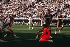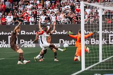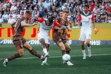 | Kein Sieger zum Heimabschluss Eintracht Frankfurt und der FC St. Pauli trennen sich 2:2 (1:2). Michy Batshuayi setzt den Schlusspunkt (71.). Die Entscheidung fällt am letzten Spieltag. Bei strahlendem Sonnenschein empfing Eintracht Frankfurt am späten Sonntagnachmittag im letzten Heimspiel dieser Bundesligasaison den FC St. Pauli. Die erste Elf ließ Chefcoach Dino Toppmöller im Vergleich zum 1:1 in Mainz vor einer Woche unverändert. Mehr anpassen musste St. Paulis Trainer Alexander Blessin, der die gelb-rot-gesperrten Nikola Vasilj und Siebe Van der Heyden durch Ben Voll und Lars Ritzka ersetzte. Das 1899. Bundesligaspiel der Eintracht begann vom Start weg spektakulär. Nach 23 Sekunden erzielten die Adlerträger die Führung: Links ließ der in Szene gesetzte Hugo Ekitiké mehrere Hamburger stehen und spielte auf der rechten Seite Rasmus Kristensen an. Dessen kurze Ablage zu Hugo Larsson kam als gefühlvoller Steckpass im Strafraum zurück, sodass der Däne zur Führung einschieben konnte (1.). Die Gäste zeigten sich allerdings wenig beeindruckt und schlugen in der vierten Minute zurück. Eine flacher Ball von links ins Zentrum kam noch etwas zu scharf, dafür hatte Manolis Saliakas bei seinem folgenden Flankenversuch mehr Glück. Dessen geplante Hereingabe rutschte so ab, dass sie als unhaltbare Bogenlampe über Kevin Trapp ihren Weg ins Tor fand. Damit erzielte auch das zweite Tor des Tages ein Rechtsverteidiger; Kristensen seinerseits im zweiten Match hintereinander. Der Fuß bleib erstmal auf dem Gaspedal. Auf der einen Seite lenkte Kiez-Keeper Voll bei seinem Startelfdebüt in der ersten Liga einen Abschluss von Larsson von der Strafraumkante um den Pfosten (6.). Auf der anderen Seite blockten die Hessen einen Versuch von Oladapo Afolayan (10.). Fünf Minuten später drehte der Aufsteiger schließlich die Partie. Nach einer Ecke für die SGE machte Voll das Spiel schnell, Larsson grätschte ins Leere, sodass Morgan Guilavogui auf und davon war. Der zurückgeeilte Jean-Mattéo Bahoya konnte dessen ersten Versuch noch blocken, doch im Nachsetzen schob der Angreifer zum 1:2 ein. Der FC St. Pauli zog sich in der Folge deutlich weiter zurück und versuchte weiterhin Nadelstiche zu setzen, während die Frankfurter nach Lösungen gegen die dichte Staffelung suchte. Wenn im weiteren Verlauf des ersten Durchgangs etwas ging, dann über Einzelaktionen. Doch weder der sich durchdribbelnde Ekitiké (22.) noch Bahoya mit einem Schlenzer (34.) brachten ihre Abschlüsse gefährlich auf das gegnerische Gehäuse, sodass vor Anbruch der letzten 45 Heimminuten 2024/25 ein 1:2 auf dem Videowürfel stand. Um aus den fast 73 Prozent Ballbesitz im ersten Durchgang mehr Durchschlagkraft zu schöpfen, brachte Dino Toppmöller zur zweite Hälfte mit Michy Batshuayi einen zweiten Stürmer. Bahoya hatte Feierabend. Viel sollte sich gegen nach wie vor sehr engagierte und organisierte Kiezkicker allerdings erstmal nicht ändern. In den entscheidenden Zonen des Spielfeldes hatten die SGE kaum Zeit und Raum, um wirklich gefährliche Angriffe zu initiieren. Währenddessen gelang auch dem FC St. Pauli offensiv nicht mehr viel. Falls doch mal etwas Gefahr aufflackerte, war zumeist Kapitän Trapp schnell genug aus seinem Kasten, um die Situation im Keim zu ersticken. Es dauerte bis zur 66. Minute, ehe die Eintracht zu einer halbwegs gefährlichen Angriffsaktion kam, doch der fünf Minuten zuvor für den verletzten Tuta eingewechselte Can Uzun flog an der wuchtigen Flanke vorbei. So langsam aber sicher bekam die SGE nun aber dennoch einen Fuß in die Tür und brachte mit Farès Chaibi für Ellyes Skhiri einen weiteren Offensivakteur. Und der Joker stach augenblicklich; besser: die Joker. Denn keine zwei Zeigerumdrehungen später steckte der Algerier durch auf Batshuayi, der in der Box nicht lange fackelte und den ersten Torschuss der zweiten Hälfte zum umjubelten Ausgleich nutzte (71.). Damit war auch der Ton für die Schlussphase gesetzt. Denn während die Fans im mit 58.000 Zuschauern ausverkauften Deutsche Bank Park nochmal mächtig anschoben, bekam auch die Mannschaft die zweite Luft und drängte auf den Dreier. Die nächste Gelegenheit gehörte Kristensen, dessen Versuch knapp am linken Pfosten vorbei ging (85.). Drei Minuten später erzielte Batshuayi aus kurzer Distanz das vermeintliche 3:2, doch dem Treffer wurde aufgrund eines Handspiels im Vorfeld die Anerkennung verweigert. Somit blieb es auch nach Ablauf der sechsminütigen Nachspielzeit beim 2:2, wodurch Eintracht Frankfurt am kommenden Samstagnachmittag ein Endspiel um die Königsklasse bevorsteht: Um 15.30 Uhr bittet der erste Verfolger SC Freiburg zum Tanz im Breisgau. Stimmen zum Spiel Dino Toppmöller: Wir hatten einen Traumstart, kassieren dann zwei unglückliche Gegentore und haben etwas gebraucht, um diese Schockmomente zu verdauen. In der zweiten Halbzeit haben wir eine gute Reaktion gezeigt, haben auf zwei Spitzen und später zwei Achter umgestellt. Die Wechsel haben uns gutgetan. Wir wussten, dass St. Pauli tiefer verteidigt und brauchten einen guten Boxspieler, den haben wir mit Michy Batshuayi bringen können. Dann hatten wir Chancen, das Spiel zu drehen. Am Ende ist es unglücklich, dass der Ball Michy an die Hand springt. Es hat das Quäntchen Glück gefehlt. Die Jungs haben alles versucht. Jetzt haben wir es immer noch in eigener Hand. Vielleicht ist das genau diese Herausforderung, die das Team braucht, um schneller zu wachsen. Wir waren nicht am absoluten Leistungsmaximum. Du brauchst Schärfe, aber auch den Schuss Lockerheit. Womöglich hat Letzteres gefehlt, um eine bessere Leistung auf den Platz zu bringen. Wir wollten es vielleicht zu viel. Das möchten wir uns nächste Woche im Training erarbeiten. Die Ausgangssituation vor dem letzten Spieltag hätte vor der Saison jeder unterschrieben. Sie ist für uns besser als für Freiburg, wir spielen trotzdem nicht auf Remis und wollen dort den letzten Schritt gehen. Kevin Trapp: Wi