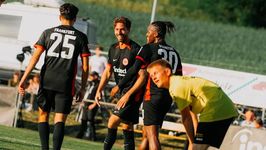 | Tore und Sonne satt in Geislitz Erfolgreicher Auftakt von „Eintracht in der Region“: Im Main-Kinzig-Kreis sorgen die Adlerträger beim 14:0 (5:0) für zahlreiche Höhepunkte – und einen großen Abend für den A-Ligist. Volles Haus am Ortsrand von Geislitz, pickepackevoll war die Sportanlage des FSV im Ortsteil der Gemeine Linsengericht. Die Frankfurter Eintracht hautnah, Vorhang auf für die vierte Auflage von „Eintracht in der Region“: Diesmal gaben die Profis, wenige Tage zuvor durch den 3:1-Auswärtserfolg gegen den SC Freiburg als Tabellendritter in die UEFA Champions League eingezogen, den Startschuss für die Erfolgskampagne. Sonnenschein, 2500 Zuschauer, viele strahlende Gesichter, große Eventfläche – alles angerichtet für einen großen Eintracht-Tag in der Nachbarschaft. „Da könnten wir uns dran gewöhnen“, sagte Max Meyer, Sportlicher Leiter beim A-Ligisten FSV Geislitz, mit einem Lachen, als er auf die zwei, direkt neben dem Vereinsheim geparkten Eintracht-Mannschaftsbusse gefragt wurde. Ursprünglich hatte sich der Klub für ein Gastspiel der Traditionsmannschaft beworben, und plötzlich flatterte die Botschaft ins Haus, dass die Mannschaft von Cheftrainer Dino Toppmöller vorbeikommen wird: „Der erste Gedanke war: Das darf nicht wahr sein. Die vergangenen zehn Tage waren für unser 20- bis 25-köpfiges Team schon aufopfernd. Aber wenn man das hier jetzt alles sieht, ist es wie weggeblasen“, freute sich Meyer und wurde von lautem Applaus unterbrochen, als die Hausherren zum Warm-up auf den Rasen kamen. „All das nehmen wir nicht für selbstverständlich“, bedankte sich Sportdirektor Timmo Hardung beim FSV für die tolle Organisation und Stimmung. Die Eintracht schickte neben den Nachwuchsadlern Prenaj, Haranghi, Siljevic und Doumbia in den ersten 45 Minuten gegen den frisch gebackenen A-Liga-Meister Amenda, Chaibi, Matanovic, Wahi, Bahoya, Uzun und Chandler auf den Rasen. Der erste Aha-Moment gehörte aber den Geislitzern: Torjäger Oliver Brosch zog ab und fabrizierte eine gefährliche Bogenlampe (4.). Elye Wahi (12, 38.), Can Uzun (20.), Igor Matanovic (30., 43.) netzten indes gegen den gut aufgelegten Keeper Tom Krieg, der einige Versuche entschärfte, und stellten zur Pause auf 5:0. „Es ist ein geiles Gefühl! Die Jungs der Eintracht sind alle gut drauf, es macht viel Spaß“, betonte Brosch, der in der laufenden Saison bereits 34 Tore markierte. „Was ein Neuner“, sagte Uzun während des Interviews im Vorbeilaufen. Alles locker, alle gut drauf. Die ersten Autogrammwünsche wurden schon in der Halbzeitpause erfüllt. Bevor Schiedsrichter Christian Stübing den zweiten Durchgang anpfiff, wurde der FSV Geislitz von Vertretern des Kreisfußballausschusses Gelnhausen für den Aufstieg in die Kreisoberliga geehrt, mittendrin: Timothy Chandler als Gratulant der Eintracht. Einige Meter entfernt machten sich die Adlerträger warm für Teil zwei des Freundschaftsspiels, darunter auch Kevin Trapp – zwar mit der Nummer eins auf dem Rücken, aber nicht im Torwart-, sondern im Feldspielertrikot. Neben dem Kapitän, nun zu Hause im Sturm, kamen Batshuayi, Nkounkou, Ilicevic und Yildirim auf den Platz. Draußen blieben Wahi, Matanovic, Amenda, Bahoya und Chaibi. Während sich die ersten SGE-Profis, die nach der ersten Hälfte Feierabend hatten, auf eine Runde durch die Fans machten, um Autogramm- und Selfie-Wünsche zu erfüllen, ging es auf dem Platz munter weiter. Metehan Yildirim eröffnete mit dem 6:0 in der 58. Minute offiziell Halbzeit zwei. Es folgten Michy Batshuayi (61., 84.), Keeper Trapp (66.), Christian Prenaj (69., 73.), Uzun (80.) und Batshuayi (83.). Den Schlusspunkt setzte der erst 14-jährige Niko Ilicevic (88.) und Timothy Chandler (90.). Doch freilich war das nackte Ergebnis am Ende zweitrangig, im Vordergrund standen der Spaß und das große Eintracht-Erlebnis für den FSV Geislitz gegen den Königsklassenteilnehmer aus dem Herzen von Europa. „Vielen Dank und an alle Zuschauer! Es war toll“, so FSV-Coach Dennis Naase. Sein Frankfurter Pendant, Dino Toppmöller, sagte: „Es war ein super Rahmen: tolles Wetter und Zuschauer sowie viele Tore!“ Und Sportdirektor Timmo Hardung bilanzierte: „Der FSV Geislitz hat sich von seiner besten Seite präsentiert, ich haben viele fröhliche Gesichter gesehen. Beide Teams hatten Spaß, es war für alle ein positives Erlebnis bei bestem Wetter.“