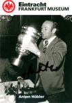 Über Toni Hübler werden rund um die Eintracht viele Geschichten erzählt, doch noch viel mehr weiß er selbst zu erzählen. Geschichten, die kaum einer so erzählt wie er. Es sind Geschichten, in denen aus großen Triumphen und bitteren Niederlagen der Riederwälder persönliche Erlebnisse werden und aus bewunderten Fußballstars Menschen, die einem nach Tonis Erzählung so nahe stehen wie gute Freunde. Denn Toni erzählt diese Geschichten mit etwas, was in diesen Tagen, in denen Menschen wie nie zuvor öffentlich an den Pranger gestellt werden, selten geworden ist: Toni erzählt mit Herz. Nie rückt er sich bei seinen Geschichten aus fünf Jahrzehnten Eintracht Frankfurt in den Vordergrund, nie erhebt er sich über andere, immer zeigt er bei seinen Erzählungen Verständnis für die Fehler und Schwächen anderer. Und wenn es selbst ihm schwerfällt, einen Eintrachtler in Schutz zu nehmen, winkt er mit einer Hand kurz ab, macht eine Pause und erzählt lieber eine andere Geschichte. Die Odyssee zur Eintracht Im Sommer des Weltmeisterjahres 1954 zieht es einen jungen Landschaftsgärtner, der bislang in Württemberg lebte, ins Hessische. Ziel ist die kleine, seinerzeit noch eigenständige Gemeinde Urberach im damaligen Landkreis Dieburg, in der bereits sein Vater wohnt. Die Gründe für den Umzug sind eher lapidar, wie Toni Hübler heute berichtet: "Ich war jung, gerade 25 geworden, und wollte einfach einmal einen Tapetenwechsel." Kaum in der neuen Heimat, der er bis heute treu geblieben ist, angekommen, geht es für Toni auf Arbeitssuche. Erfolglos bleibt der Besuch des Arbeitsamts Langen, das er mit dem Tipp verlässt, es einmal in Frankfurt zu versuchen. Und dort muss Toni nicht lange warten, bis er eine Stelle angeboten bekommt. Denn er trifft vor Ort zwei Herren der Eintracht, die für den im August 1952 eingeweihten Riederwald einen jungen Landschaftsgärtner suchen. "Die haben mich regelrecht hofiert", so Toni, "haben den damaligen Spielausschussvorsitzenden Balles hinzugerufen, mich bewirtet und mit mir gleich einen Vorstellungstermin für den nächsten Tag am Riederwald ausgemacht, um die Einzelheiten zu besprechen." Wie später in all den Jahren bis heute versetzt die Eintracht Toni Hübler in Aufregung. Mit 3 Mark in der Tasche steigt er in den Zug gen Hauptbahnhof, vergisst jedoch, sich eine Fahrkarte zu besorgen und muss nachlösen. 1,50 Mark hätte die einfache Fahrt gekostet, weitere 1,50 kostet die Strafe; kurzum Toni ist zwar in Frankfurt, hat aber keinen Pfennig mehr in seinen Taschen. Auf Schusters Rappen geht es kreuz und quer durch die unbekannte Stadt, am Schauspielhaus weist ihm ein freundlicher Herr den Weg ins Stadion. Dort im Glauben angekommen, sein Ziel erreicht zu haben, wird er schnell eines Besseren belehrt. Denn als er nach der Eintracht fragt, wird er belehrt: "Ach du lieber Gott, die is grad uff de annern Seit." Weiter geht es also auf Schusters Rappen, zurück in die Innenstadt und bis zum Riederwald. Mittags um 2 Uhr ist Toni endlich am Ziel, um 10 Uhr hatte man sich verabredet. Zum Glück für Toni scheint die Sonne an diesem Tag nicht nur für ihn, sondern auch für Fritz Becker, der das schöne Wetter nutzt, um am Riederwald 'Überstunden' in Form eines Sonnenbades zu schieben. Becker ist nicht nur der erste Nationalspieler der Frankfurter als Stürmer der Frankfurt Kickers und der erste Torschütze einer DFB-Elf im ersten Länderspiel gegen die Schweiz anno 1908, sondern aktuell auch der Vorsitzende des Platzausschusses. Toni erzählt Becker die Geschichte seiner Odyssee und erntet dafür von Becker nicht nur ein Lachen, sondern auch einen Probevertrag und geliehene 10 Mark, damit er wieder nach Hause kommt. Sumpfbrache Riederwald Acht Wochen sollte Toni ursprünglich auf Probe werkeln, doch bereits nach sechs Wochen ist für die Eintracht klar: Mit diesem jungen Gärtner haben wir den Richtigen gefunden. Toni erhält einen festen Arbeitsvertrag und damit eine anspruchsvolle Aufgabe. Denn der neue Riederwald ist zu dieser Zeit zwar eines der modernsten Stadien in Deutschland, die gesamte Sportanlage präsentiert sich allerdings noch als sumpfiges Brachland mit hohem Grundwasserspiegel und niedrigem Freizeitwert. "Da stand kein einziger Baum, kein Strauch, kein gar nichts", erinnert sich Toni. Mit Gartenbaurat Vollmer, der fast täglich vorbeischaut und als Verantwortlicher des Sport- und Badeamtes der Stadt für die Planungen zuständig ist, gewinnt der ehrgeizige und selbstbewusste Toni einen einflussreichen Verbündeten. "Er mochte mich und fragte, ob ich mir vorstellen könne, den Riederwald zu bepflanzen, was ich natürlich bejaht habe". Zusammen mit zwei Hilfskräften nimmt Toni die Arbeit in Angriff: "Wenn du mal in einer Gärtnerei gearbeitet und das Eintönige dort kennengelernt hast, bist du für so eine Aufgabe sehr dankbar." So finden unter anderem die Pappeln, für Jahrzehnte quasi ein Wahrzeichen des Riederwalds, ihren Weg aufs Sportgelände. Toni pflanzt sie, um das Grundwasser zu senken und so die Tribüne vor Hochwasser zu schützen. Ein Letzter Wille Mit seiner Arbeit als Gärtner rückt für den ehemaligen Handballer Hübler, der seine aktive Zeit aufgrund einer Schulterverletzung beenden musste, nun der Fußball in den Fokus. Denn am Riederwald trainiert die Oberligamannschaft der Eintracht, zu der unter anderem Egon Loy, Adolf Bechtold, Ernst Kudrass, 'Ali' Remlein, Hans Weilbächer, Richard Kreß, Alfred Pfaff und Hermann Höfer zählen. Spieler, die für lange Jahre einen gemeinsamen Weg mit Toni gehen und die teilweise noch heute in freundschaftlichem Kontakt mit ihrem 'Gärtner' stehen. Neben den Aktiven tritt auch noch ein weiterer Eintrachtler in Tonis Leben; ein kleiner Mann, meist mit dicker Zigarre im Mund: Karl Schildger. Das 'Karlchen' ist nicht nur ein echtes Unikat und das Maskottchen der Eintracht, er sorgt auch seit vielen Jahren dafür, dass die Schuhe der Spieler in Ordnung gehalten und die Trikots gewaschen werd